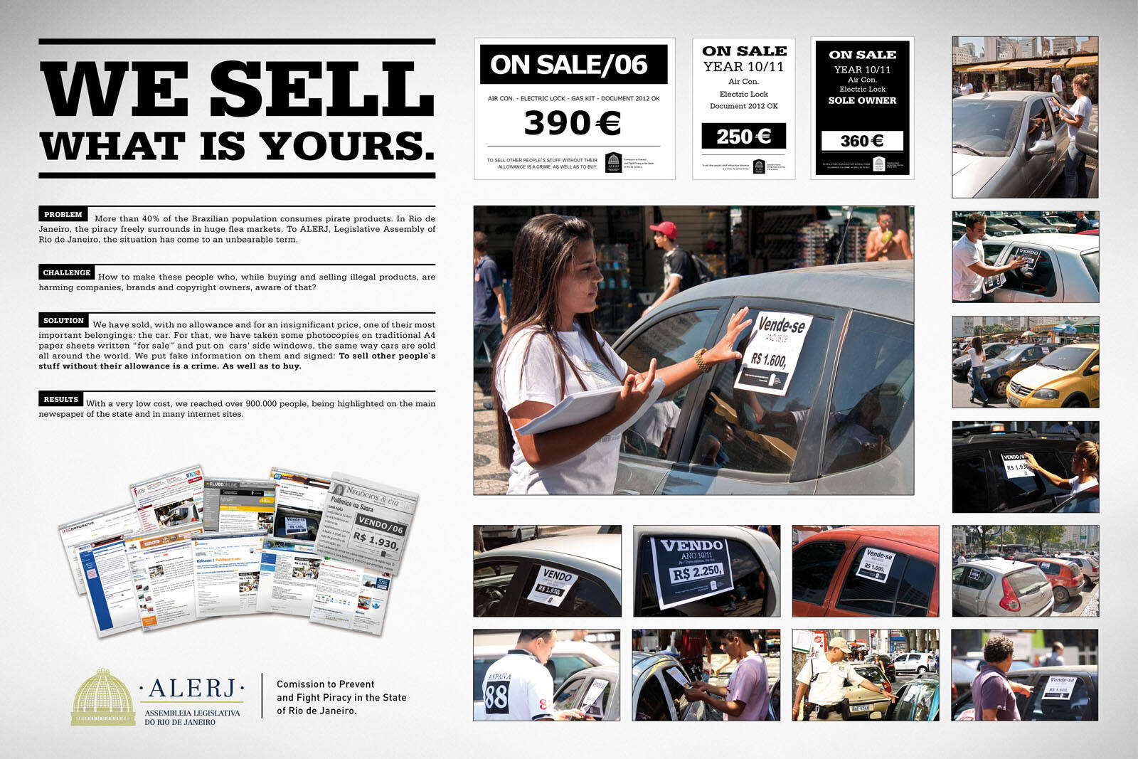 This professional campaign titled 'We Sell What Is Yours' was published in Brazil in March, 2012. It was created for the brand: Alerj, by ad agency: Staff. This Ambient medium campaign is related to the Professional Services industry and contains 1 media asset. It was submitted over 13 years ago.