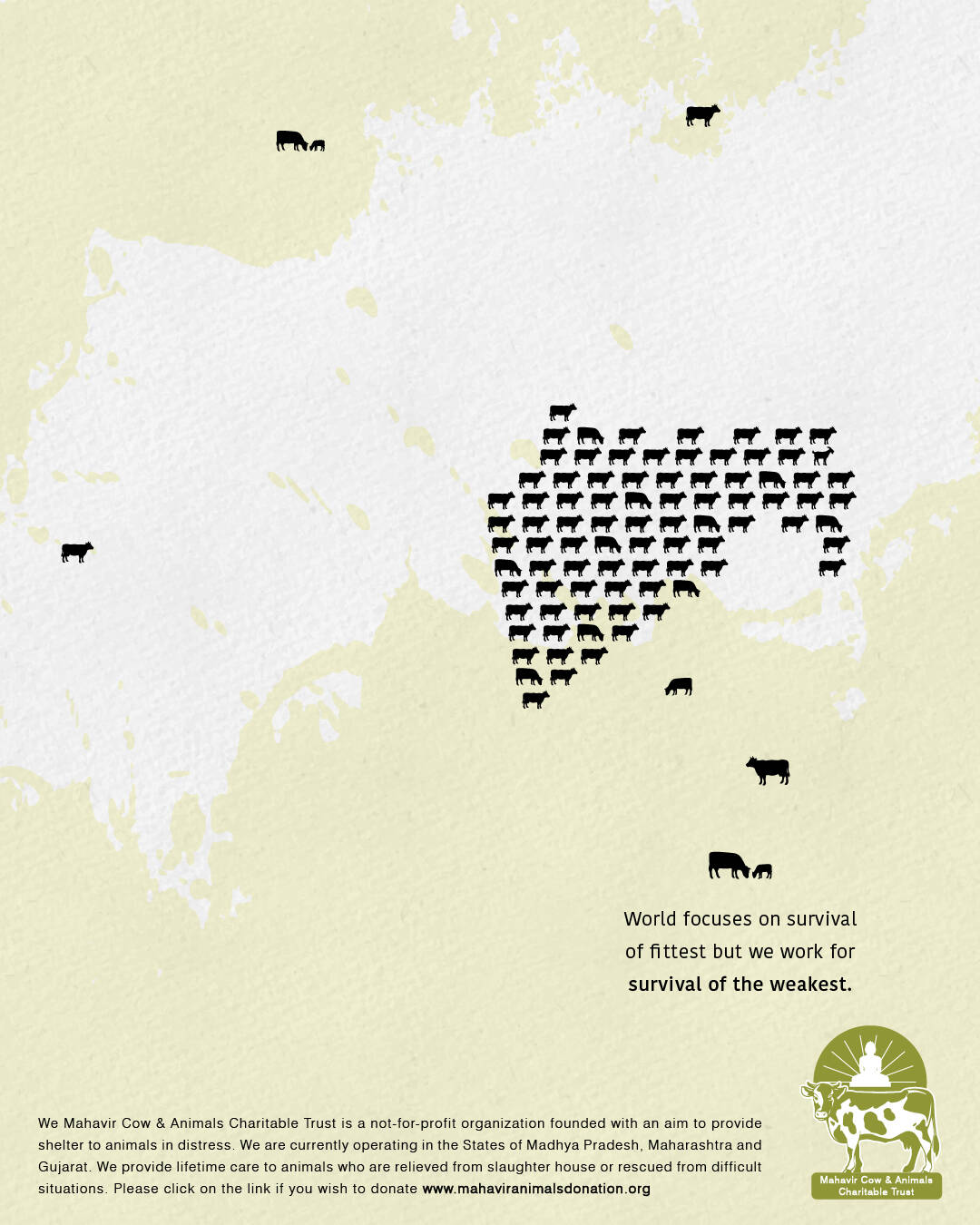 This student campaign titled 'We work for survival of the weakest' was published in India in July, 2022. It was created for the brand: Mahavir Cow & Animals Charitable Trust, by ad school: Chasmawala hai na!. This Digital and Print media campaign is related to the Public Interest industry and contains 3 media assets. It was submitted over 3 years ago by Chasmawala hai na! of Design School.