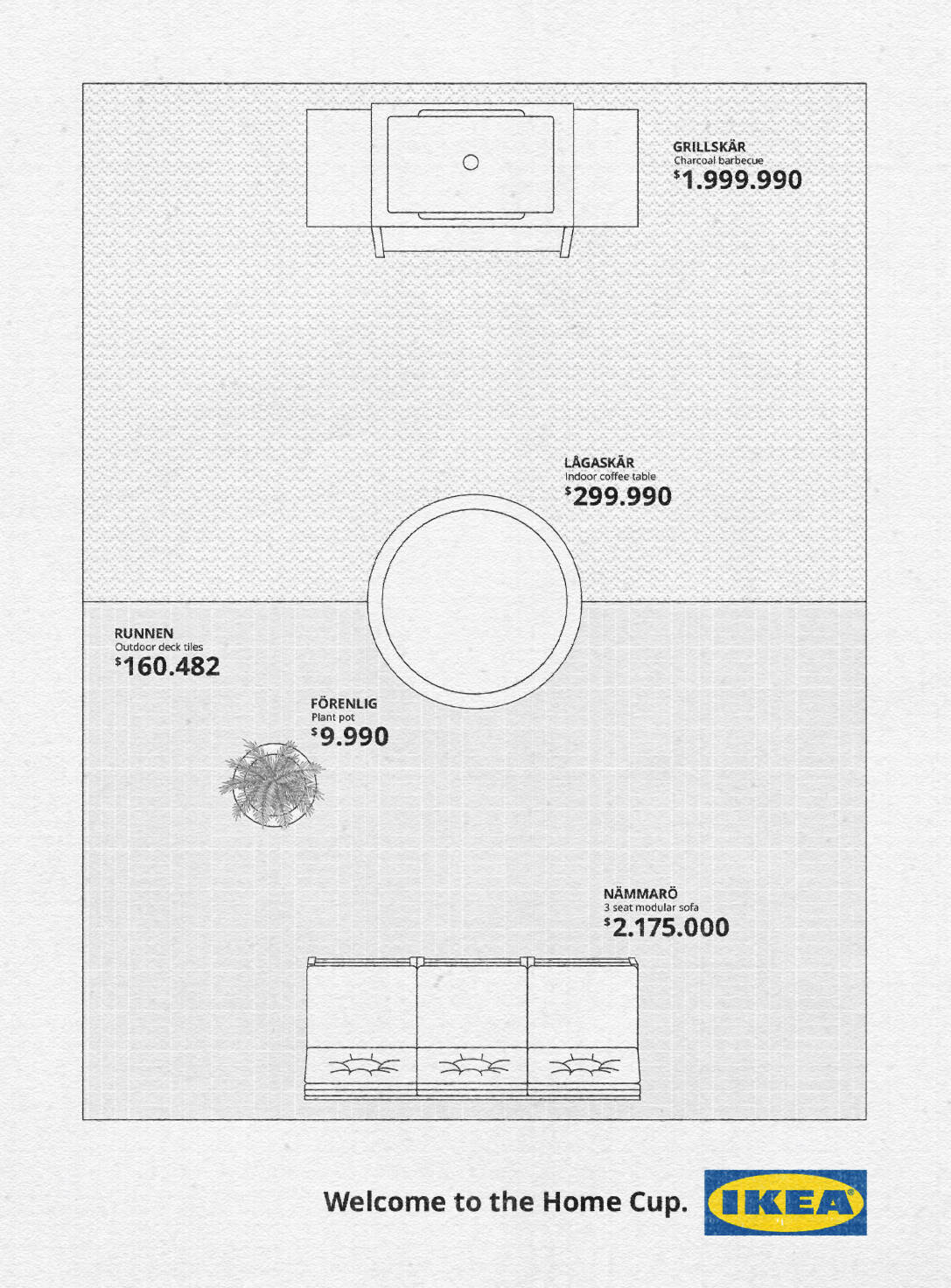 This professional campaign titled 'Welcome to the Home Cup' was published in Colombia in April, 2026. It was created for the brand: IKEA, by ad agency: Sancho BBDO. This OOH Outdoor and Print media campaign is related to the House, Garden and Retail Services industries and contains 4 media assets. It was submitted about 16 hours ago by Jerónimo Zapata Trejos of Sancho BBDO.