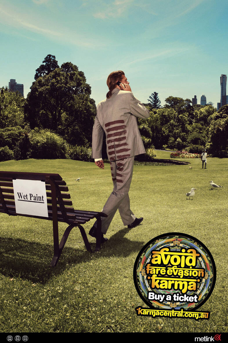This professional campaign titled 'Wet Paint, Lightning, Skirt, Drench' was published in Australia in February, 2008. It was created for the brand: Metlink, by ad agency: Marmalade. This Print medium campaign is related to the Transport industry and contains 4 media assets. It was submitted over 17 years ago.