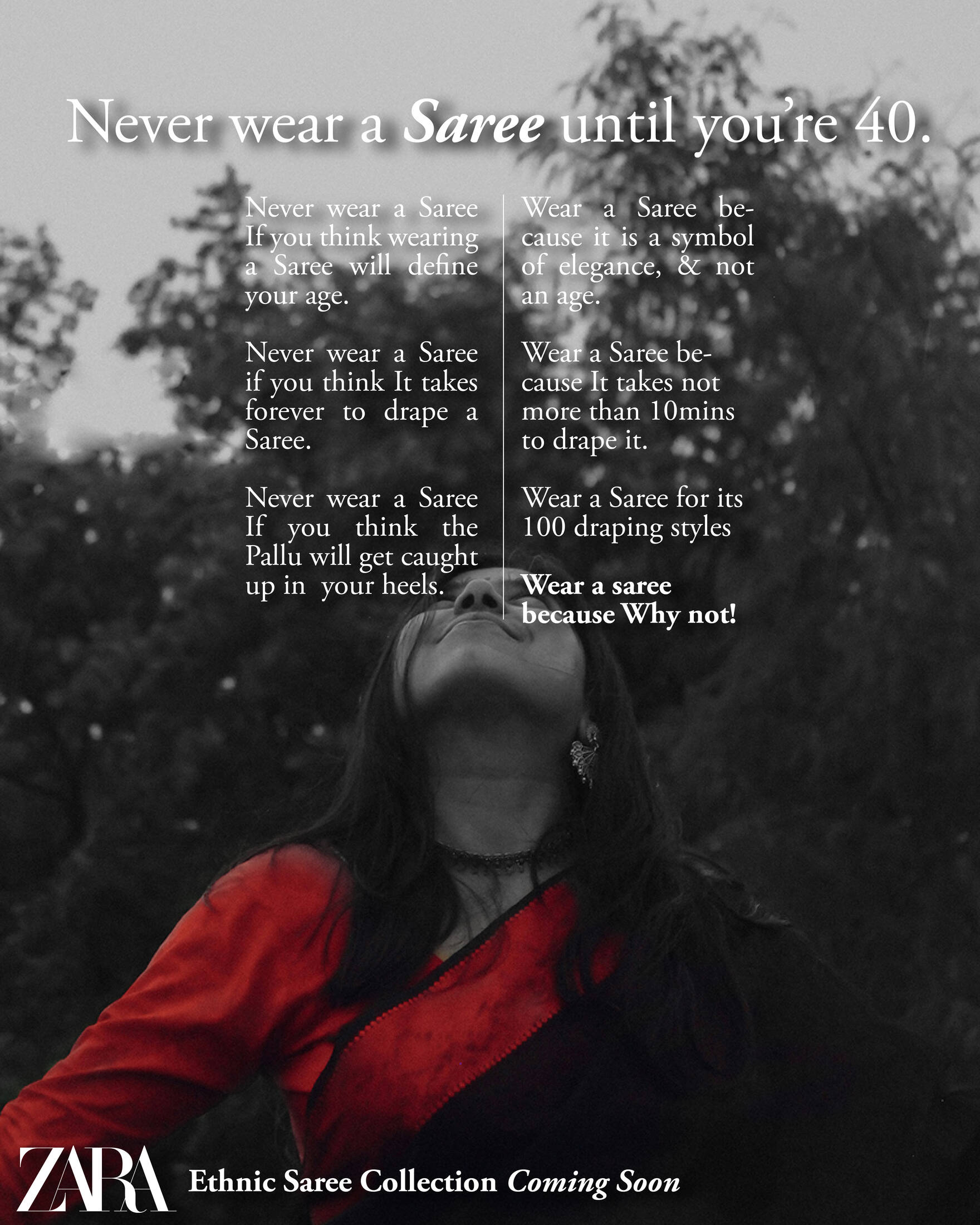 This student campaign titled 'What If Zara?' was published in India in June, 2024. It was created for the brand: Zara, . This Digital, Integrated, and Print media campaign is related to the Fashion and Retail Services industries and contains 3 media assets. It was submitted over 1 year ago by Creative Copywriter: Mohd Rayyan of The Adguy.