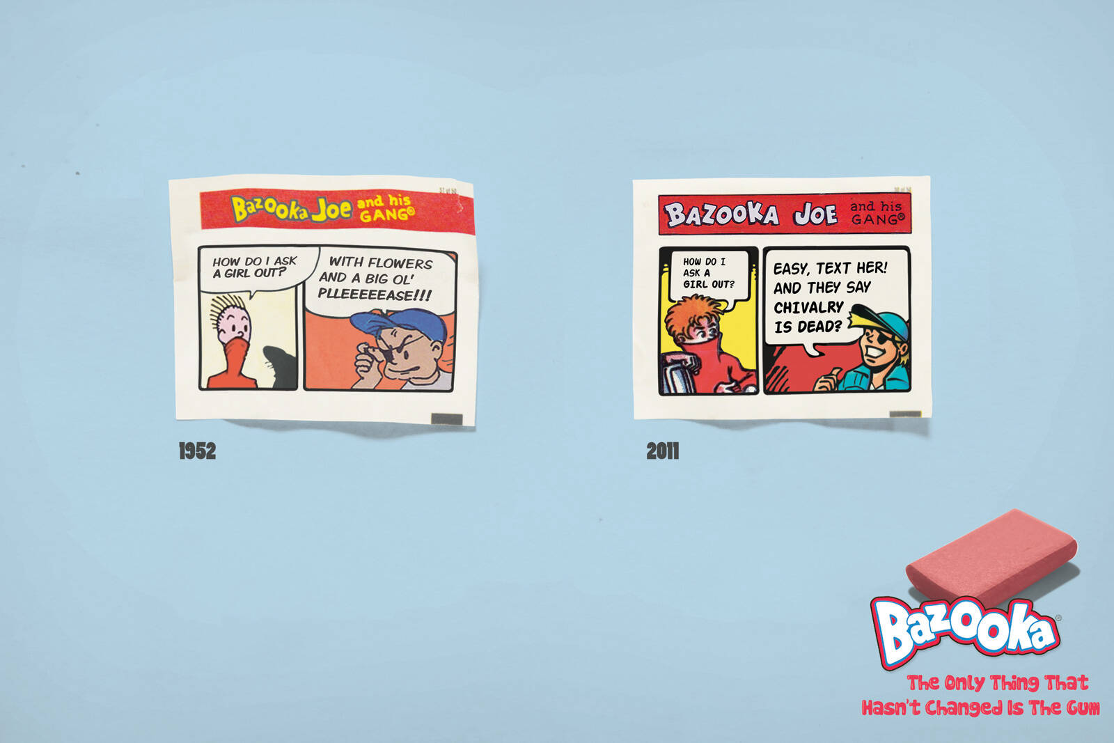 This professional campaign titled 'What to do, Ask out' was published in United States in May, 2011. It was created for the brand: Bazooka, by ad agency: School of Visual Arts. This Print medium campaign is related to the Confectionery, Snacks industry and contains 2 media assets. It was submitted over 14 years ago.