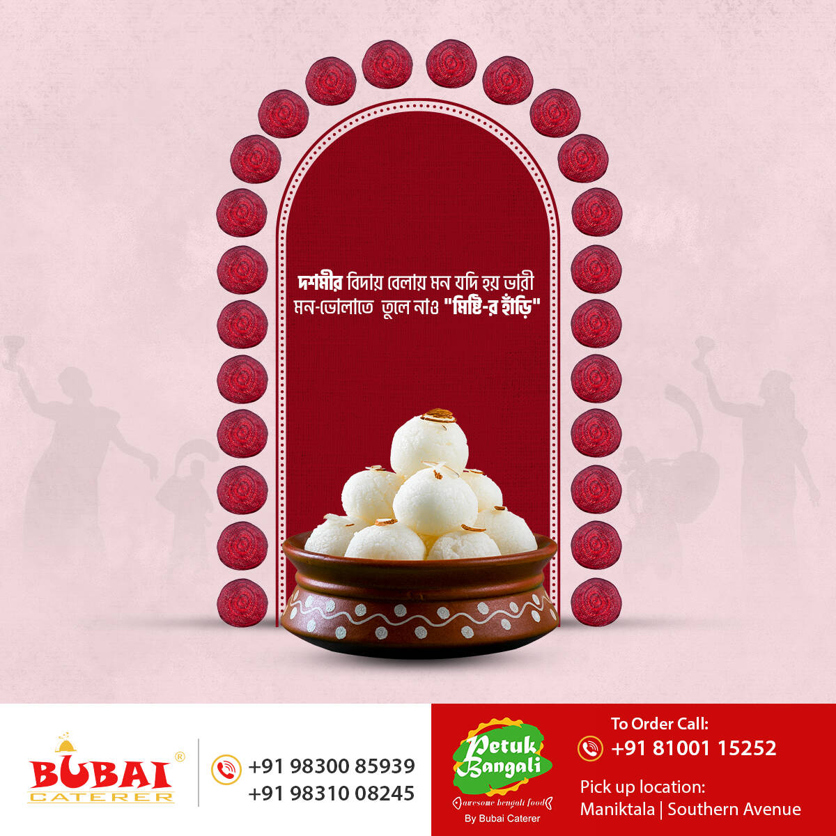 For the world, food is a means of sustenance, but for us “INDIANs”, food is an “EMOTION”, a unique language of “LOVE” that both “DISTINGUISHES” and “CONNECTS”. From Michelin-star-level dishes that are served in premium restaurants to simple home-cooked meals, food is something that we all cherish. No festivities, whether big or small, are complete without food. And since DURGA Puja is another powerful emotion for all Bengalis, we have made it a point to connect another heartwarming emotion with it, FOOD. On this note, we have decided to create a creative campaign for one of our long-standing dining and hospitality partners, “BUBAI Caterers & Petuk Bangali," a reputed catering service provider with cloud kitchen facilities. In this campaign, we have segregated each day of Durga Puja Festivities from Sasthi to Bijoya Dashami with some relevant delicacies that locals will connect with.