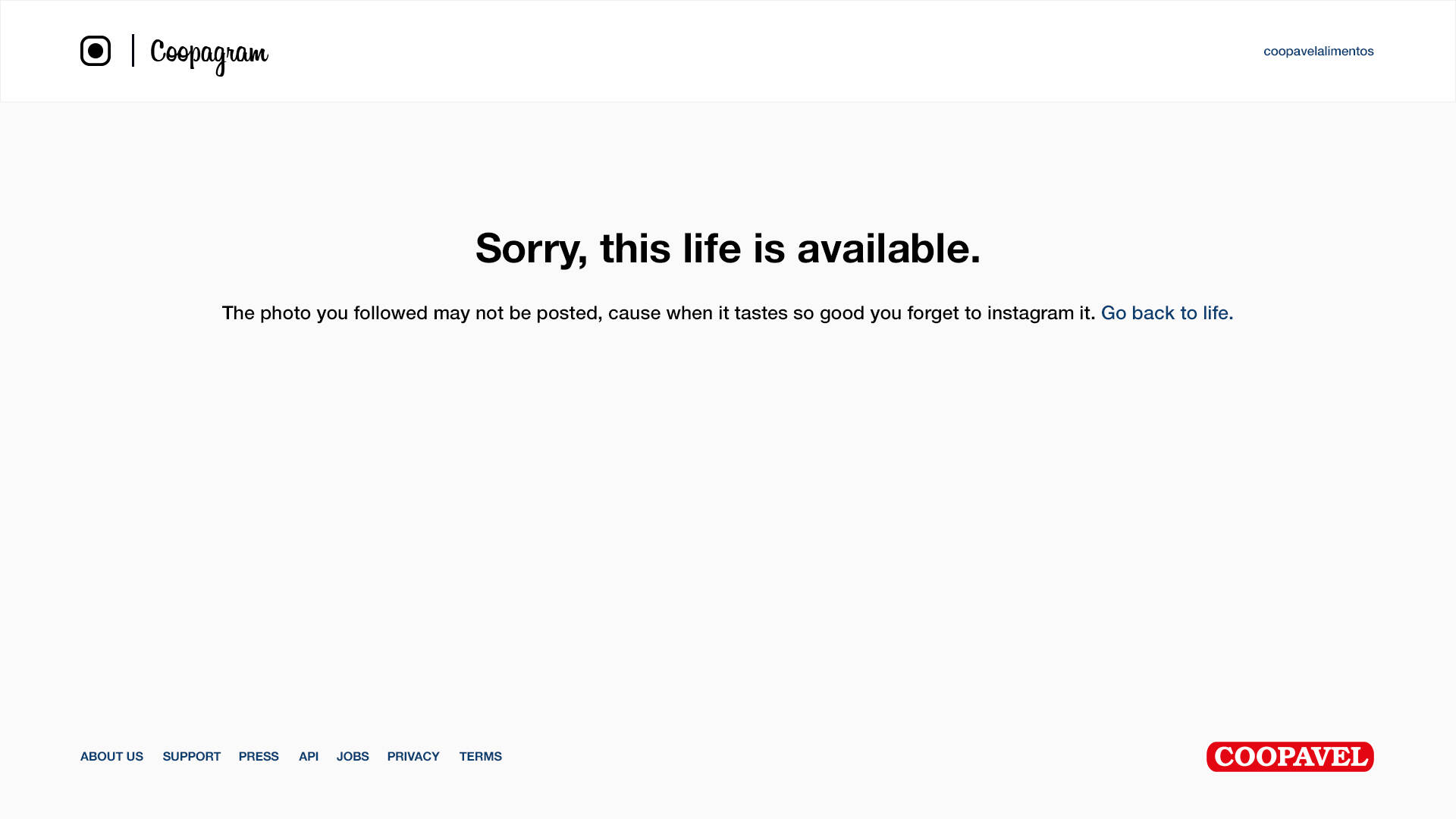 The new campaign from Coopavel, a famous food brand in Brazil, focuses on freedom, about doing things on your own way and enjoying life. So, getting into the mood of Instagram, which hid the exhibition of the likes, Coopavel wants to show that we should enjoy the real life instead of enjoy likes.
