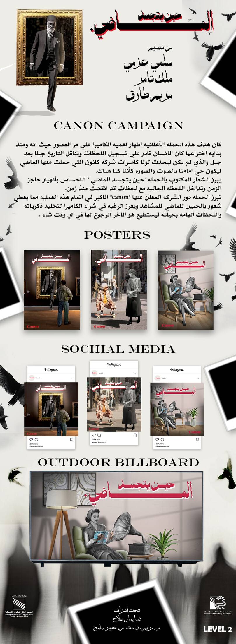 This student campaign titled 'When the past comes alive' was published in Egypt and Saudi Arabia in January, 2026. It was created for the brand: Canon, by ad school: The Higher Institute Of Applied Arts. This Design medium campaign is related to the Electronic Devices and Electronics, Technology industries and contains 4 media assets. It was submitted about 15 hours ago.