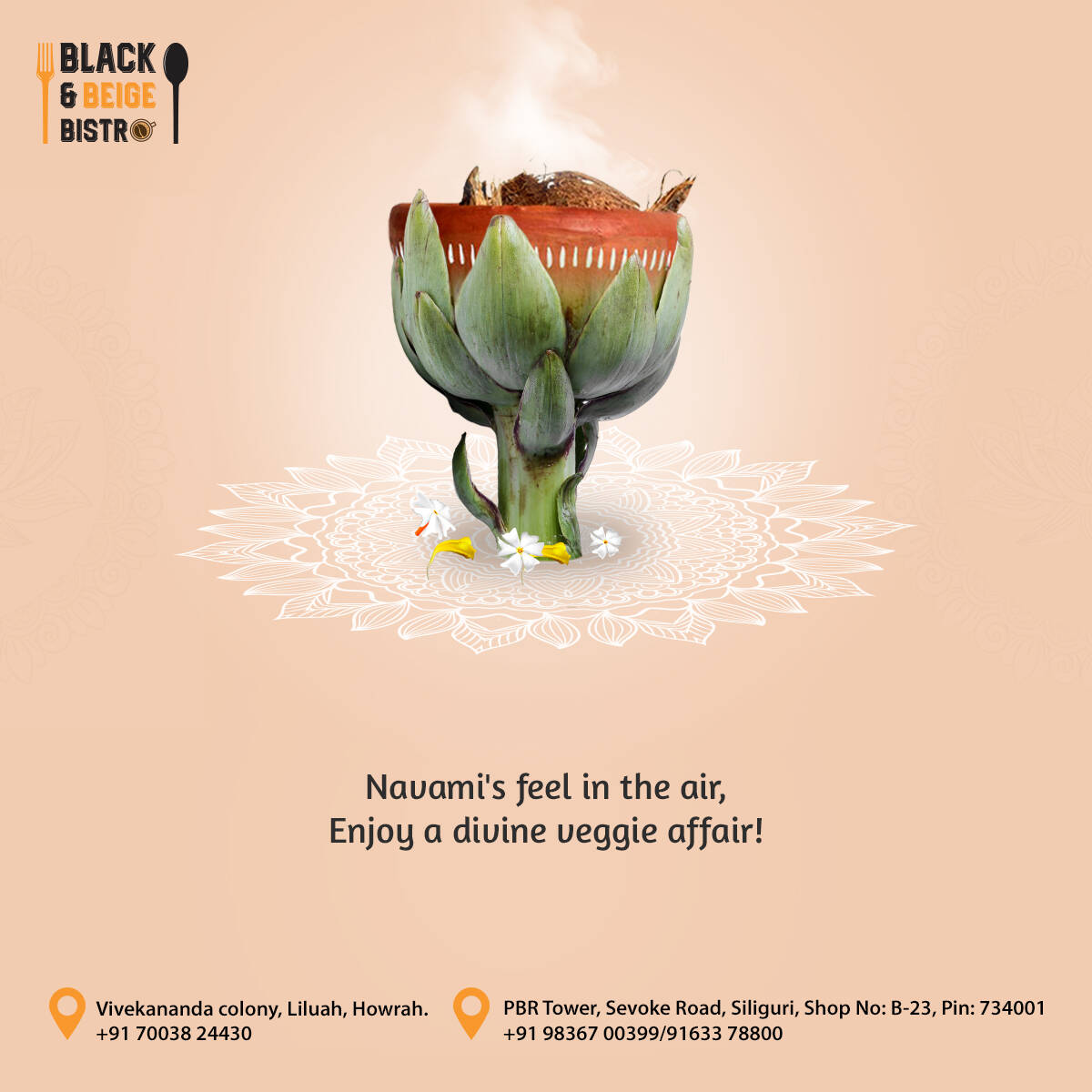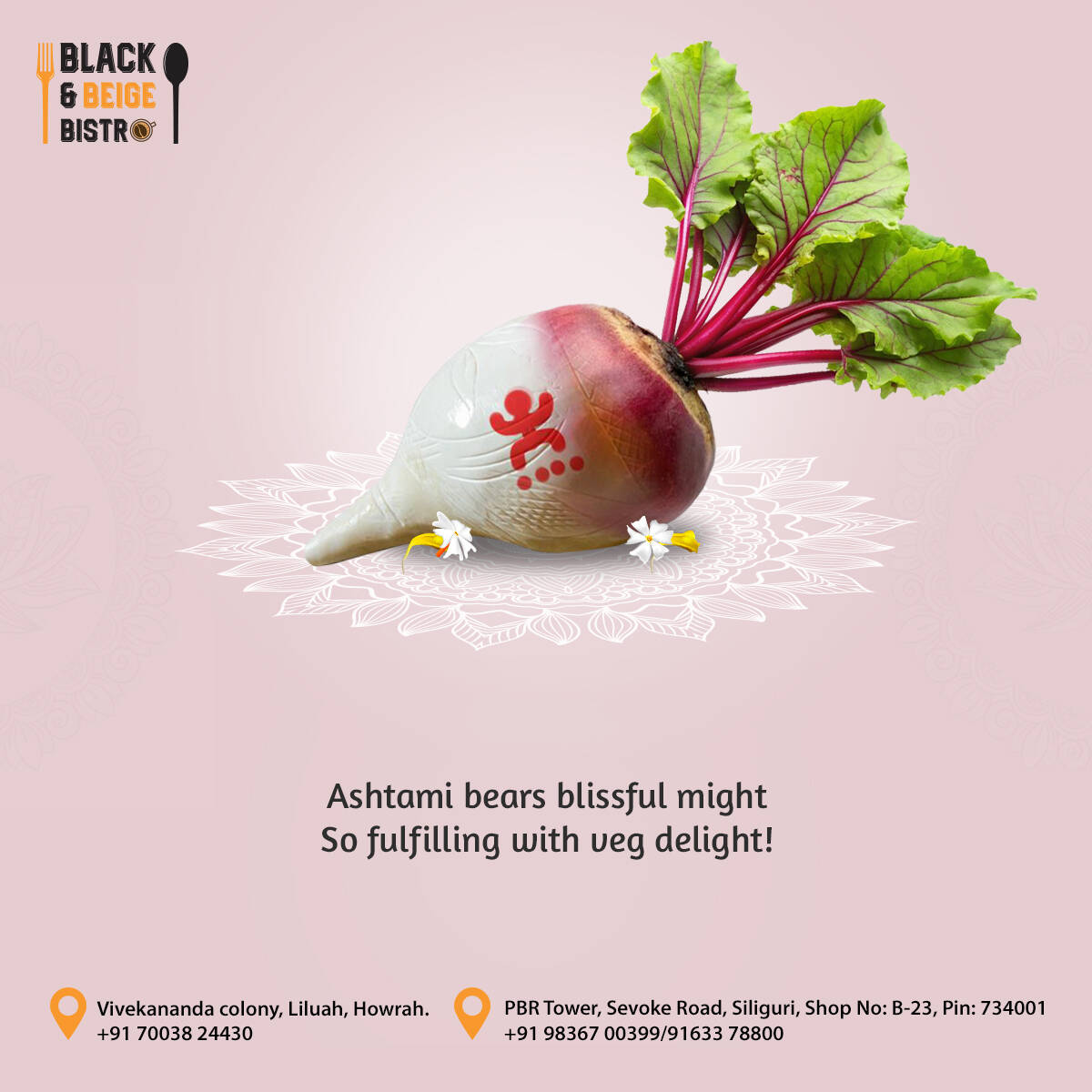 Through this creative approach, we are not only showcasing what’s on Black and Beige Bistro’s menu; we're creating a space where good food and spirituality come together naturally. It's an invitation to experience Durga Puja in a different light—through mindful, vegetarian dining that honours both tradition and taste.