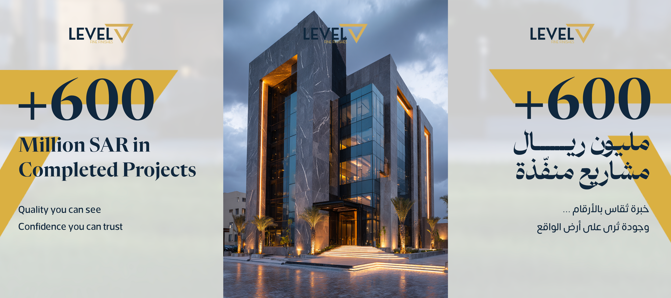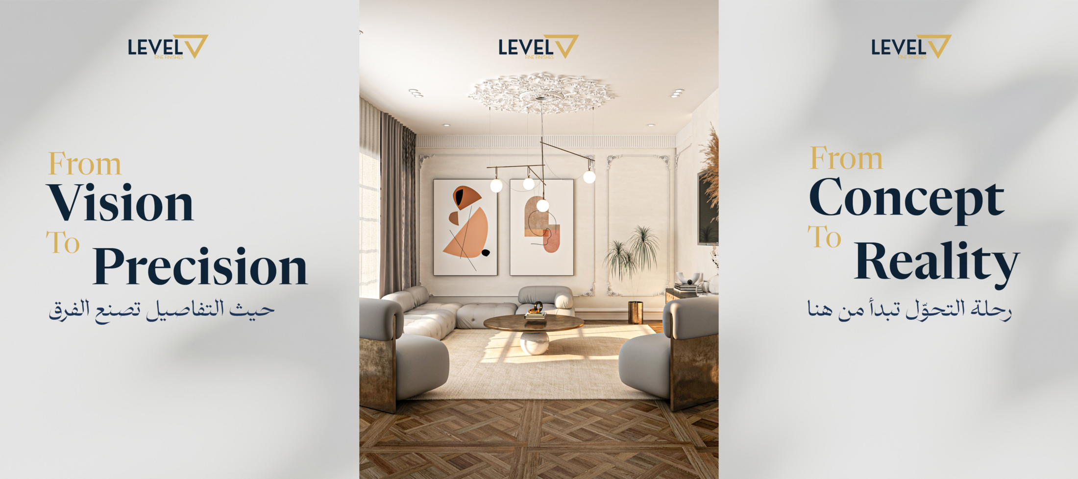 This professional campaign titled 'Where precision becomes presence' was published in Egypt in February, 2026. It was created for the brand: Level Fine Finishes, by ad agency: Digivalue LLC. This Design medium campaign is related to the House, Garden, Professional Services, and Retail Services industries and contains 10 media assets. It was submitted about 5 hours ago by DigiValue of DigiValue LLC.