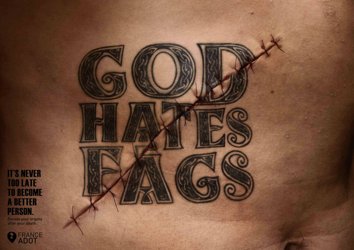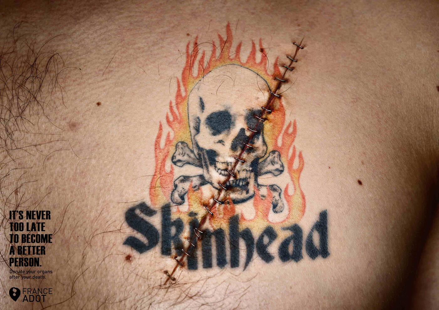 This professional campaign titled 'White pride, Skinhead, God' was published in France in April, 2010. It was created for the brand: France ADOT, by ad agency: BBDO. This Print medium campaign is related to the Public Interest industry and contains 3 media assets. It was submitted over 15 years ago.