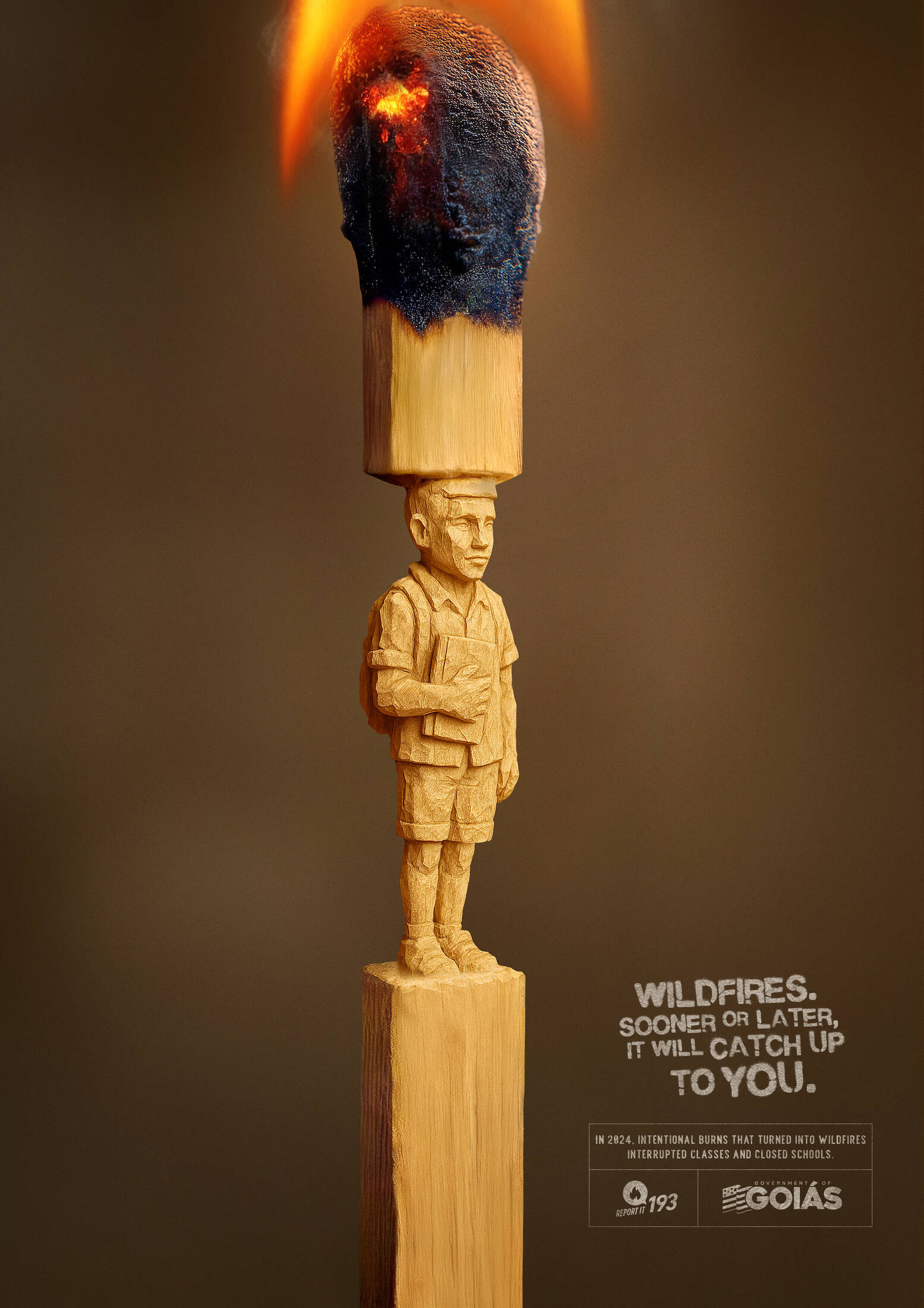 The campaign was born from a simple insight: matches, one of the main causes of wildfires, can also symbolize human lives. We created characters made of matchsticks to give shape to the invisible consequences of fire. The same object that ignites the flames came to represent the fragility of the people affected.