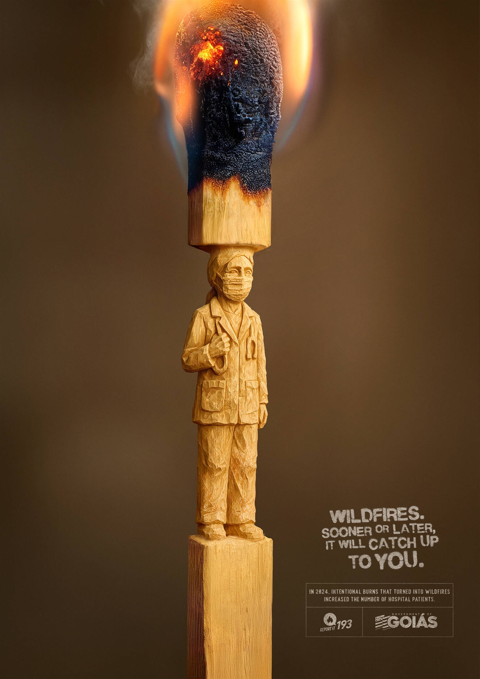 This professional campaign titled 'WILDFIRES' was published in Brazil in August, 2025. It was created for the brand: Government of Goiás, by ad agency: Propeg. This Print medium campaign is related to the Public Interest industry and contains 3 media assets. It was submitted 3 months ago by CCO: Emerson Braga of Propeg.