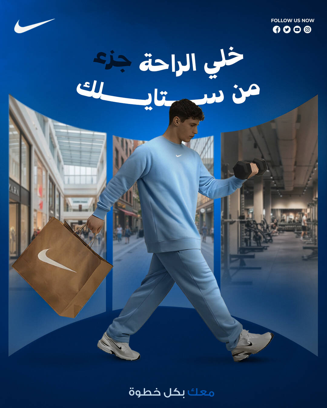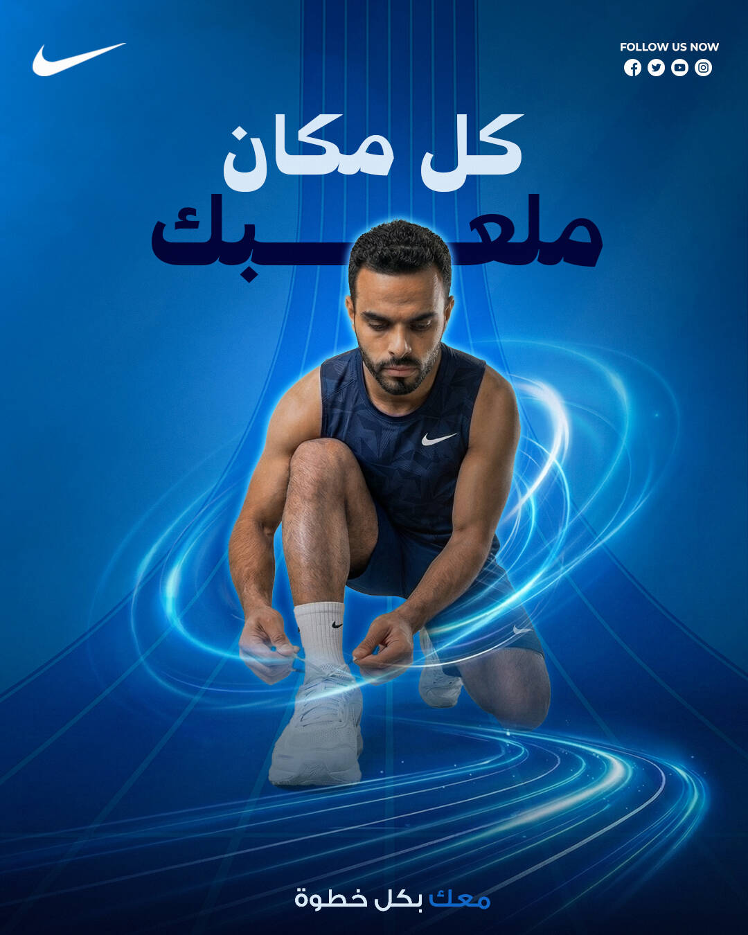 This student campaign titled 'With You Every Step' was published in Egypt in March, 2026. It was created for the brand: Nike, by ad school: SABER GROUP COURSES ACADEMY. This Design and Digital media campaign is related to the Fitness and Sports industries and contains 4 media assets. It was submitted about 16 hours ago by maria.
