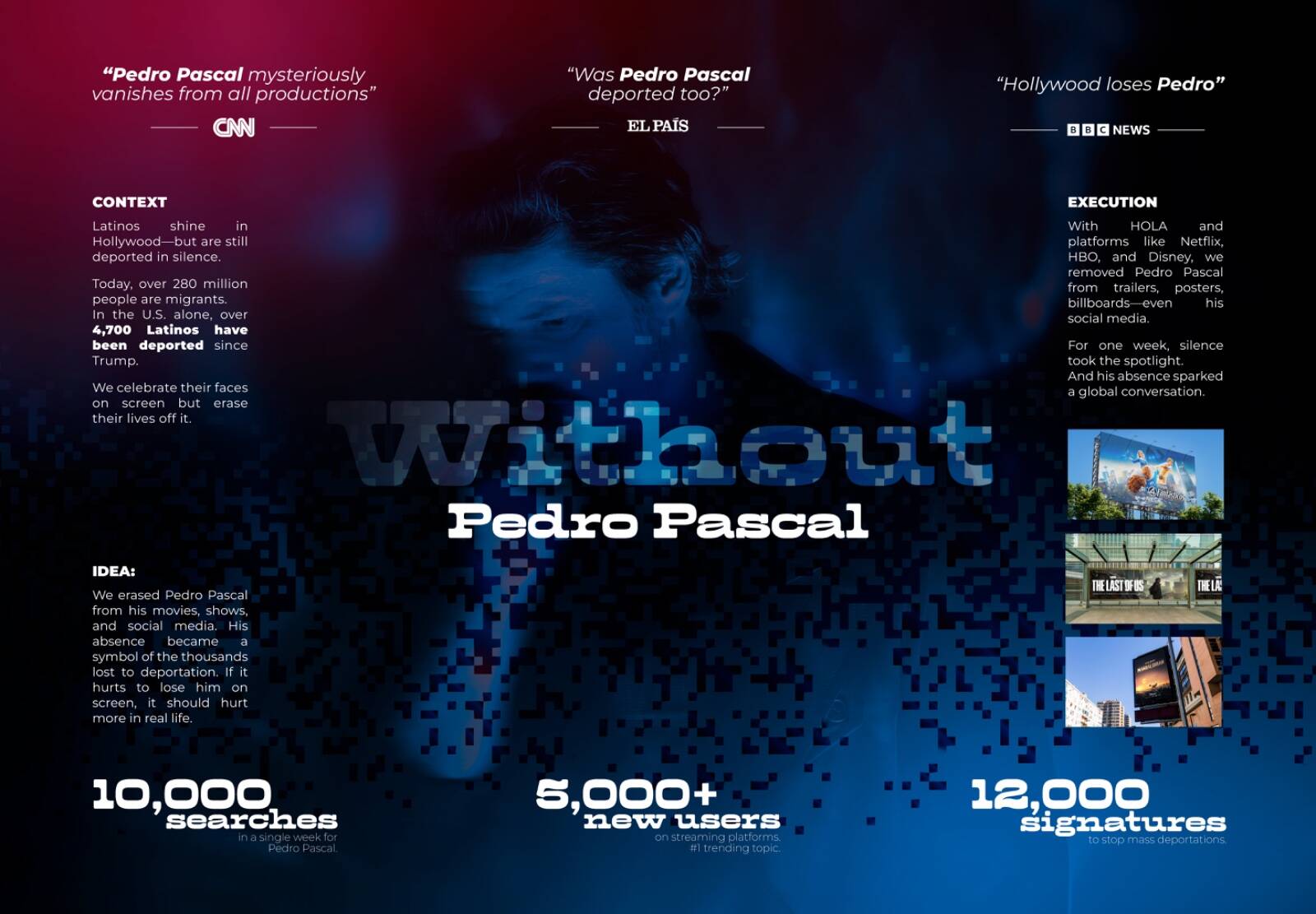 This student campaign titled 'Without Pedro Pascal - Clio Entertainment' was published in Colombia in October, 2025. It was created for the brands: HBO, Netflix, and Prime, by ad school: Bendita Carpeta. This 360°, Digital, and OOH Outdoor media campaign is related to the Media, Movies, and Public Interest industries and contains 2 media assets. It was submitted about 1 hour ago.