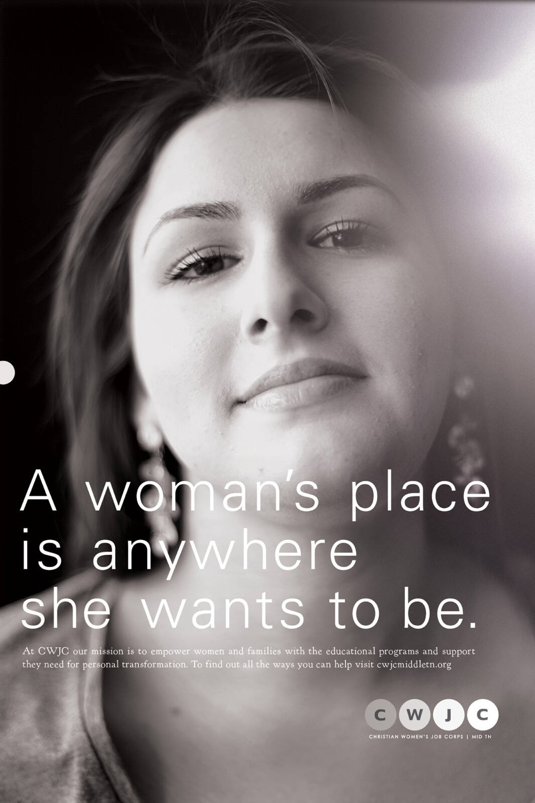This professional campaign titled 'Woman's place, Make-up, Find, Dreams, Bootstraps' was published in United States in May, 2016. It was created for the brand: Christian Women's Job Corp, by ad agency: Bohan. This Print medium campaign is related to the Public Interest industry and contains 5 media assets. It was submitted over 14 years ago.