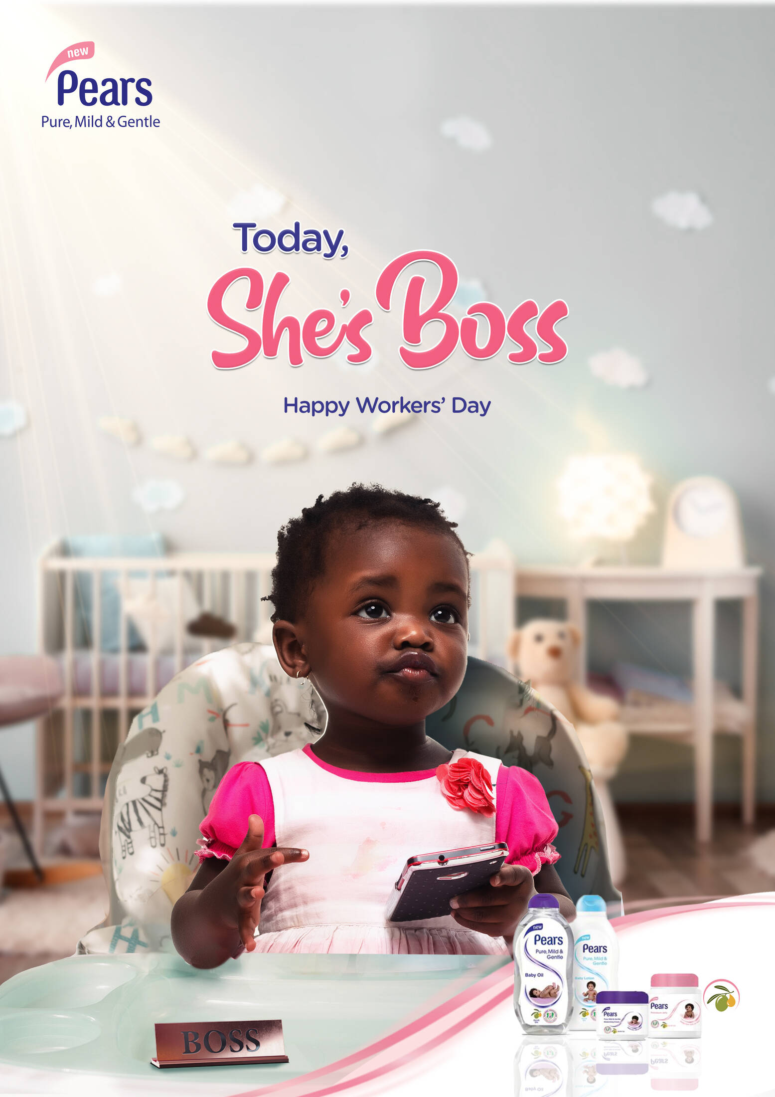 This professional campaign titled 'Worker's Day - Today, She's Boss' was published in Nigeria in May, 2022. It was created for the brand: Pears, by ad agency: Wildfusion. This Print medium campaign is related to the Beauty and Health industries and contains 1 media asset. It was submitted over 3 years ago by WildFusion of WildFusion.