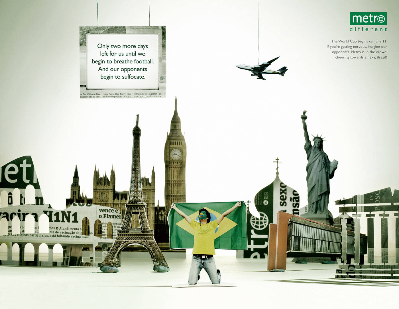 This professional campaign titled 'World Cup, Beach, Ecology, City' was published in Brazil in June, 2010. It was created for the brand: Metro, by ad agency: Lua Branca. This Print medium campaign is related to the Media industry and contains 4 media assets. It was submitted over 15 years ago.