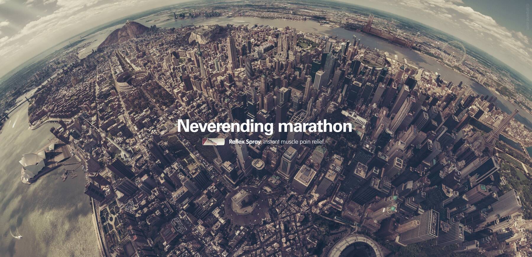 This professional campaign titled 'World Marathon' was published in Spain in March, 2013. It was created for the brand: Reflex Spray, by ad agency: Contrapunto. This Print medium campaign is related to the Pharmaceutical industry and contains 1 media asset. It was submitted over 12 years ago.