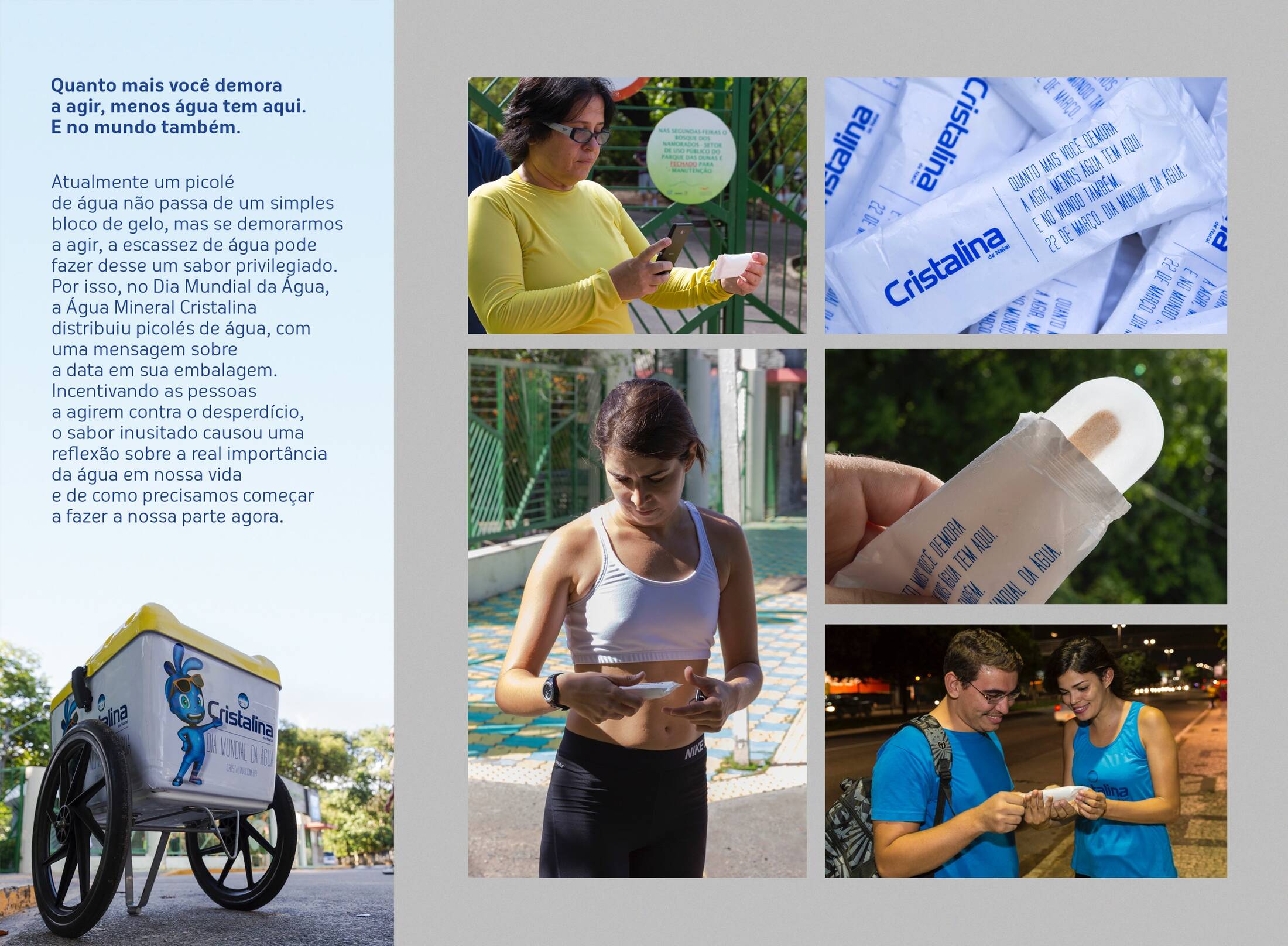 Nowadays, a water popsicle is nothing but an ice block. However if we don’t act at all, the lack of water in the world can transform this into a prime flavor. That’s why on World Water Day, Cristalina Mineral Water distributed water popsicles with a message about the day in their package. Encouraging people to act against the waste of water, the unexpected flavor promoted a reflection about the actual meaning of the water in our lives and how we need to start to do our part now.