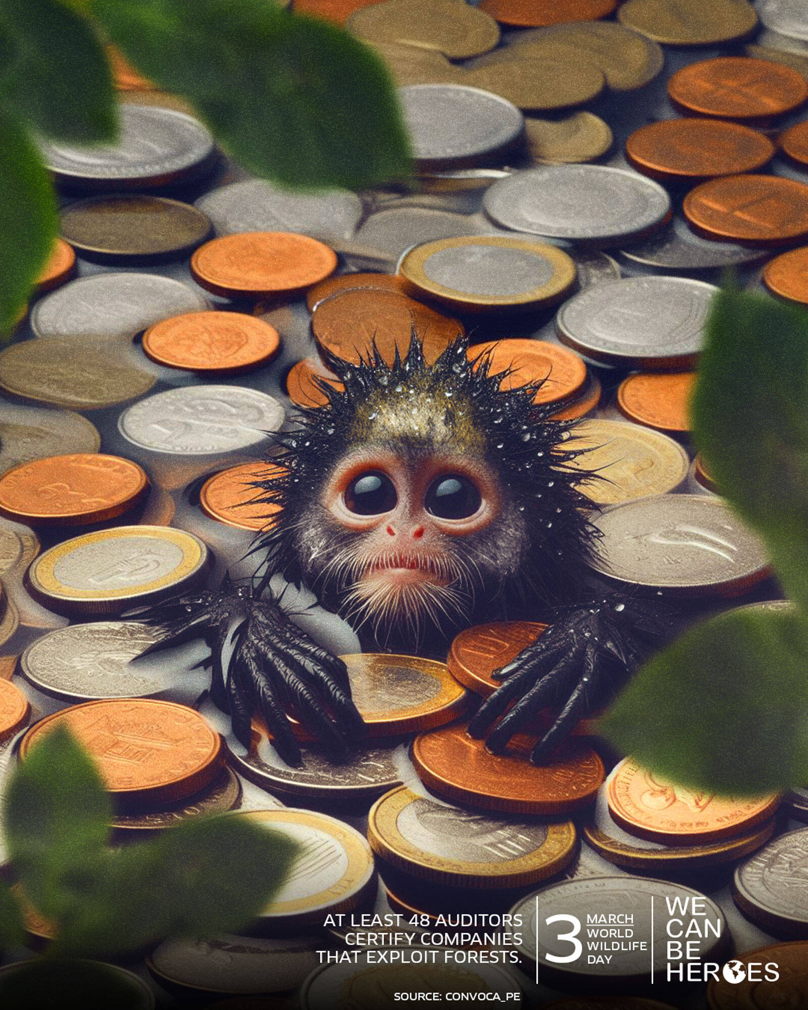 This professional campaign titled 'World Wildlife Day' was published in Peru in March, 2024. It was created for the brand: We can be Heroes, by ad agency: Agencia Vena. This Digital and Print media campaign is related to the Public Interest industry and contains 4 media assets. It was submitted almost 2 years ago.
