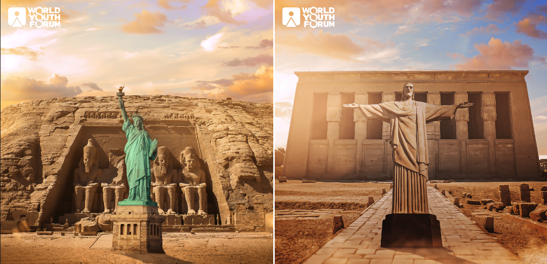 Concept: World Youth Forum is where various cultures gather from all over the world on Egyptian lands.