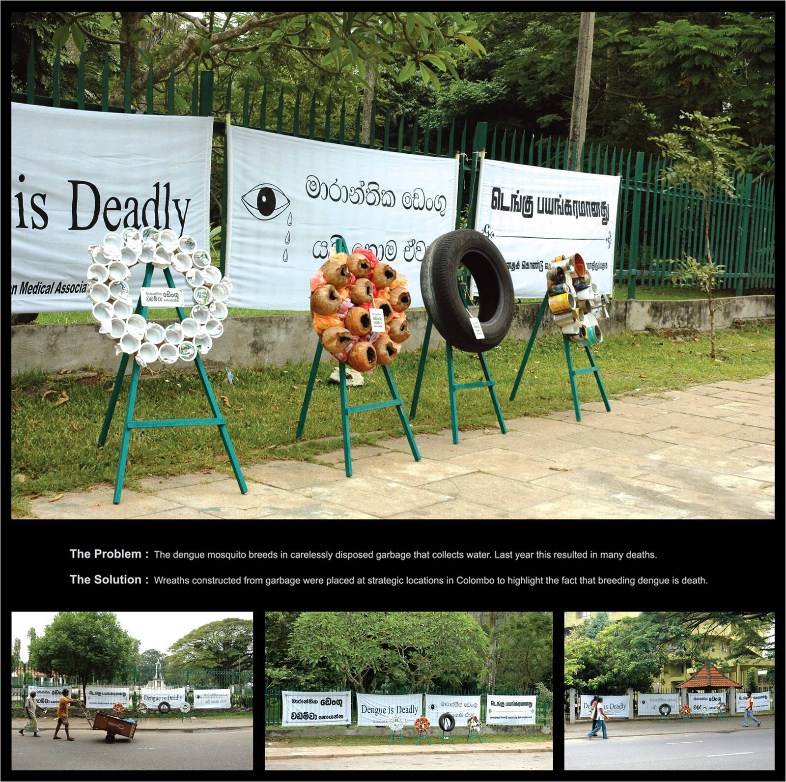This professional campaign titled 'Wreaths' was published in Sri Lanka in May, 2016. It was created by ad agency: Saatchi & Saatchi. This Ambient medium campaign is related to the Public Interest industry and contains 1 media asset. It was submitted about 15 years ago.