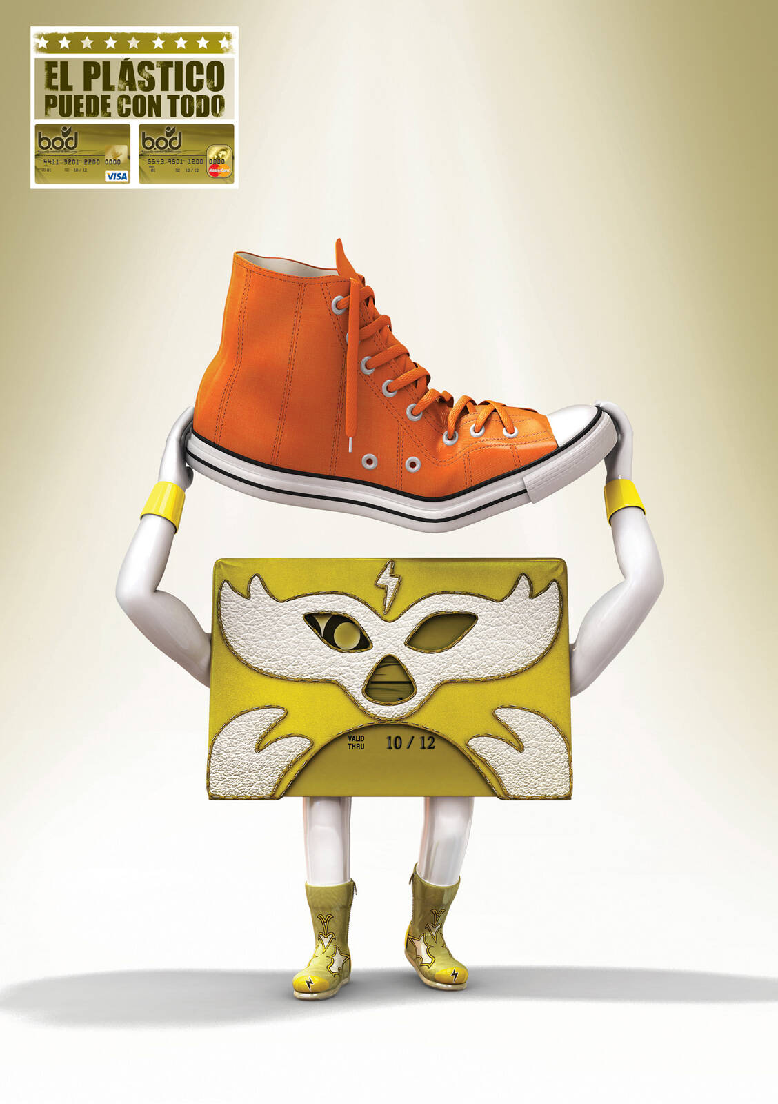 This professional campaign titled 'Wrestlers, Shoes, Wrestlers, Camera, Wrestlers, Guitar, W...' was published in Venezuela in May, 2011. It was created for the brand: Banco Occidental De Descuento, by ad agency: Creatia Publicidad. This Print medium campaign is related to the Finance industry and contains 4 media assets. It was submitted over 14 years ago.