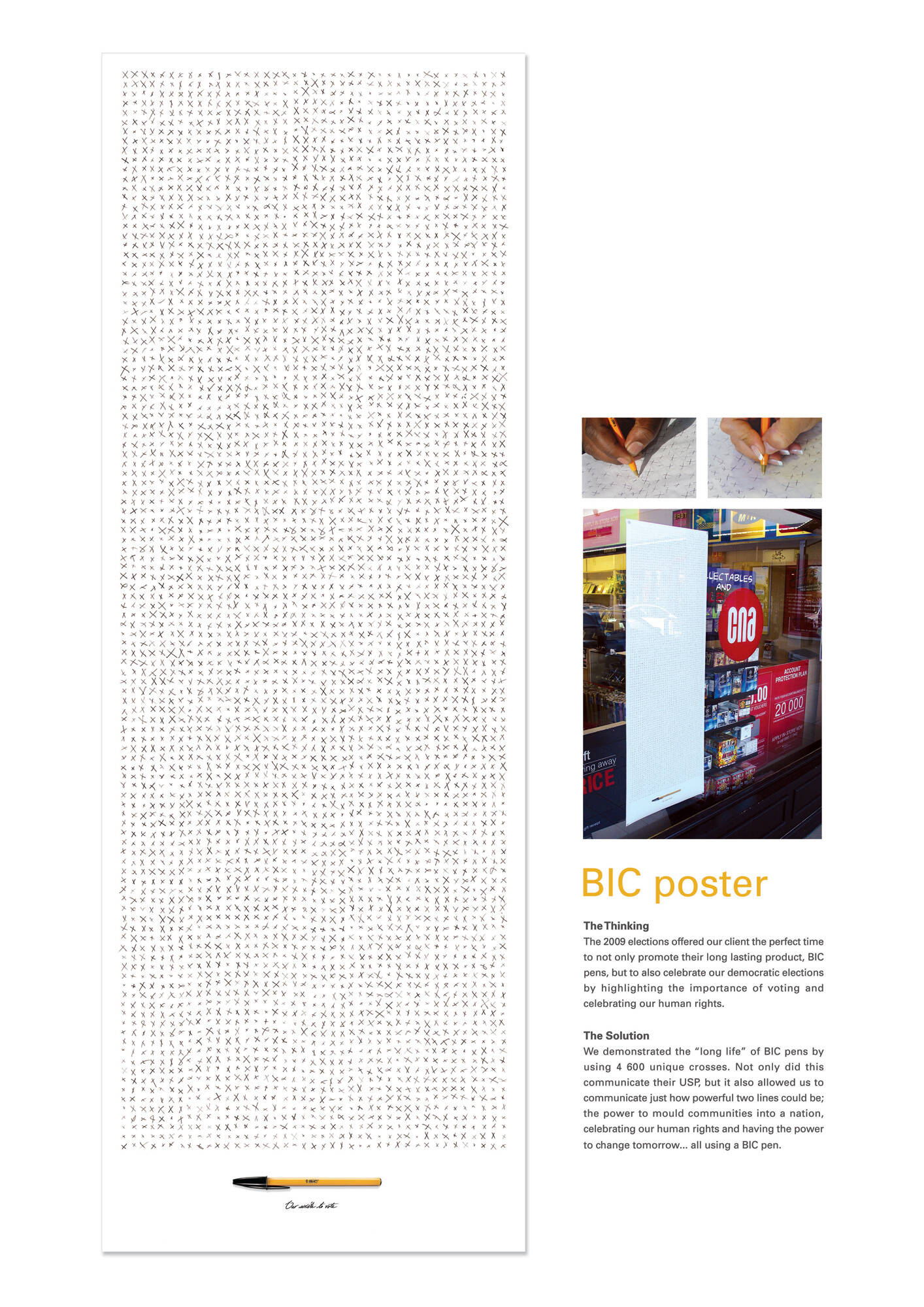 This professional campaign titled 'Write to Vote' was published in South Africa in April, 2009. It was created for the brand: BIC, by ad agency: Volcano. This OOH Outdoor medium campaign is related to the Office Equipment industry and contains 1 media asset. It was submitted over 16 years ago.