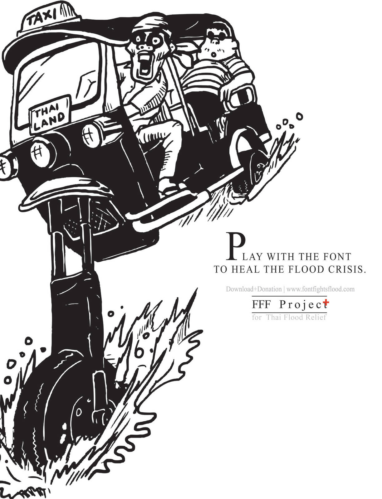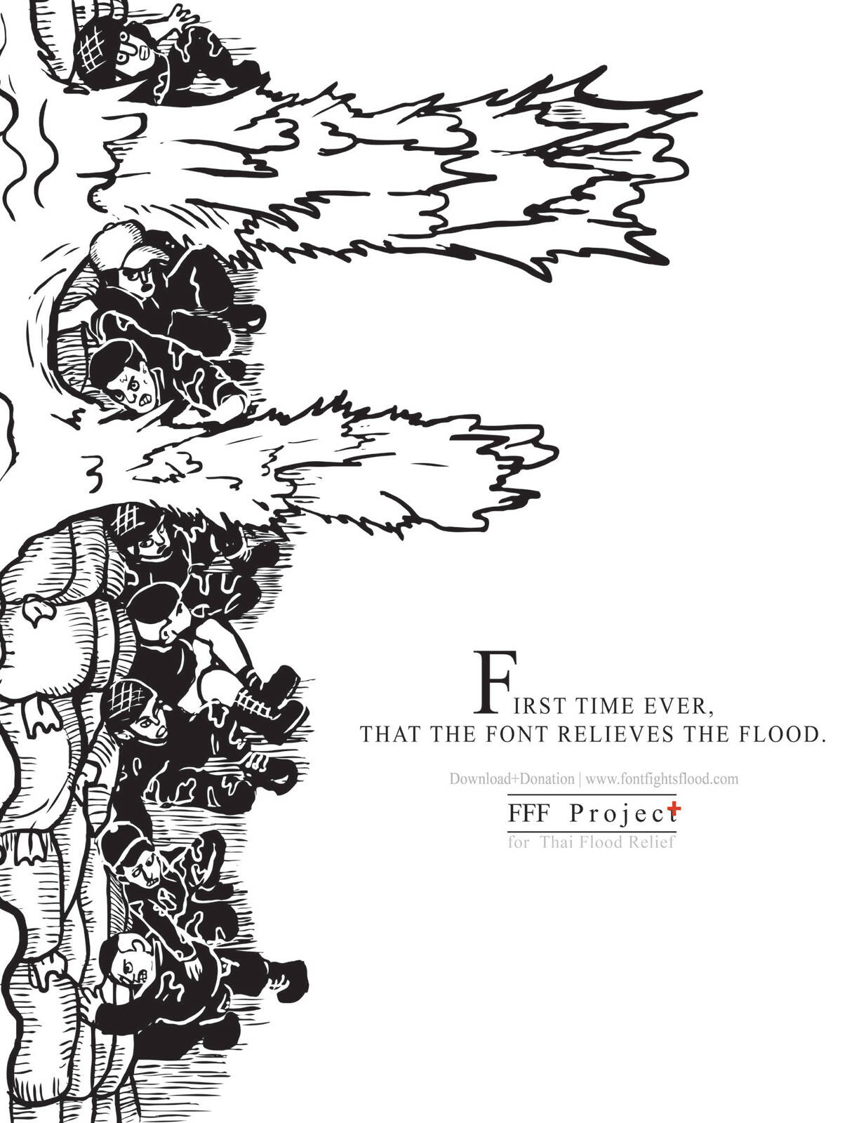 BBDO Bangkok together with Thai Red Cross launched Font Fights Flood (FFF) Project, A charity project to help relief Thai flood victims. Each alphabet of Font Fights Flood represents real incidents that occurred during Thai Flood 2011. Everyone can download the font for their usages and keep a record of this historic event together. Download Free Font and Make a donation at www.fontfightsflood.com or www.facebook.com/fontfightsflood