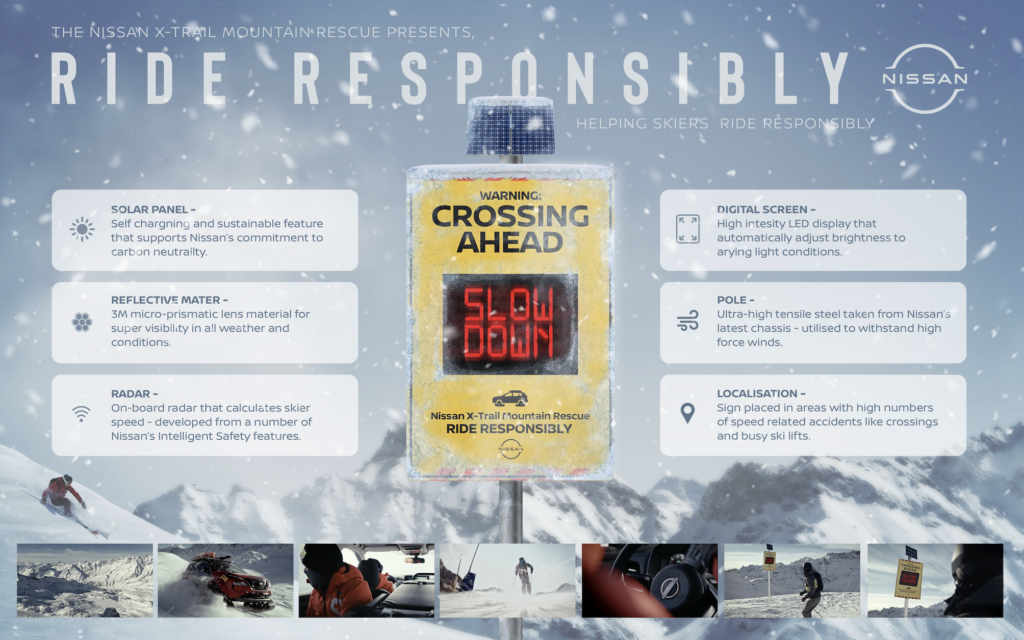 This winter, TBWA\NissanUnited are thrilled to present the "Ride Responsibly" campaign and showcase Nissan’s commitment to creating meaningful societal change through innovative technologies. To promote the Nissan X-Trail Mountain Rescue prototype, powered by e-4ORCE All-Wheel-Drive technology, TBWA\NissanUnited created a 2-minute film, activation and supporting campaign.