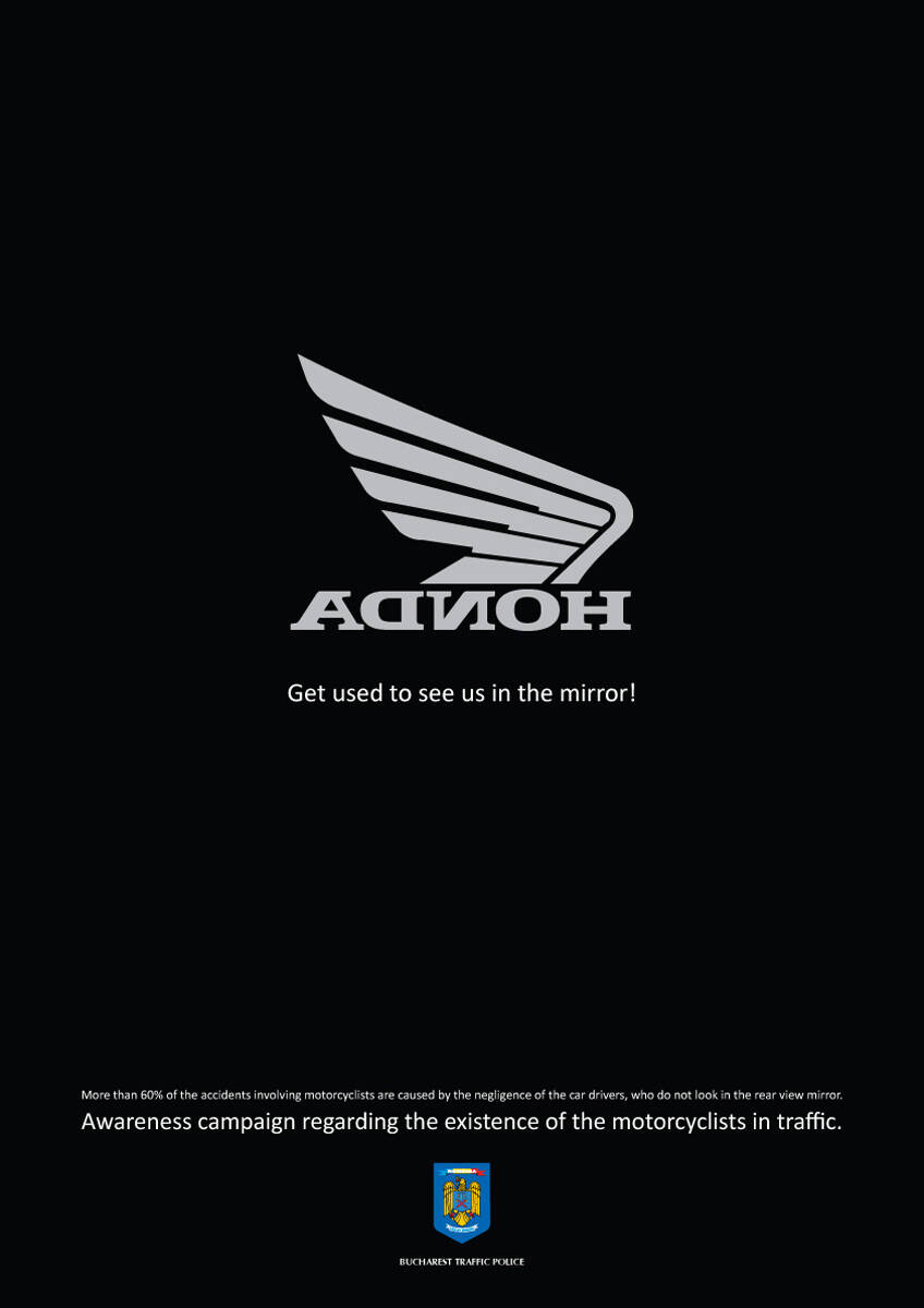 This professional campaign titled 'Yamaha, Honda' was published in Romania in August, 2007. It was created for the brand: Romanian Traffic Police, by ad agency: Mercury 360. This Print medium campaign is related to the Public Interest industry and contains 2 media assets. It was submitted over 16 years ago.