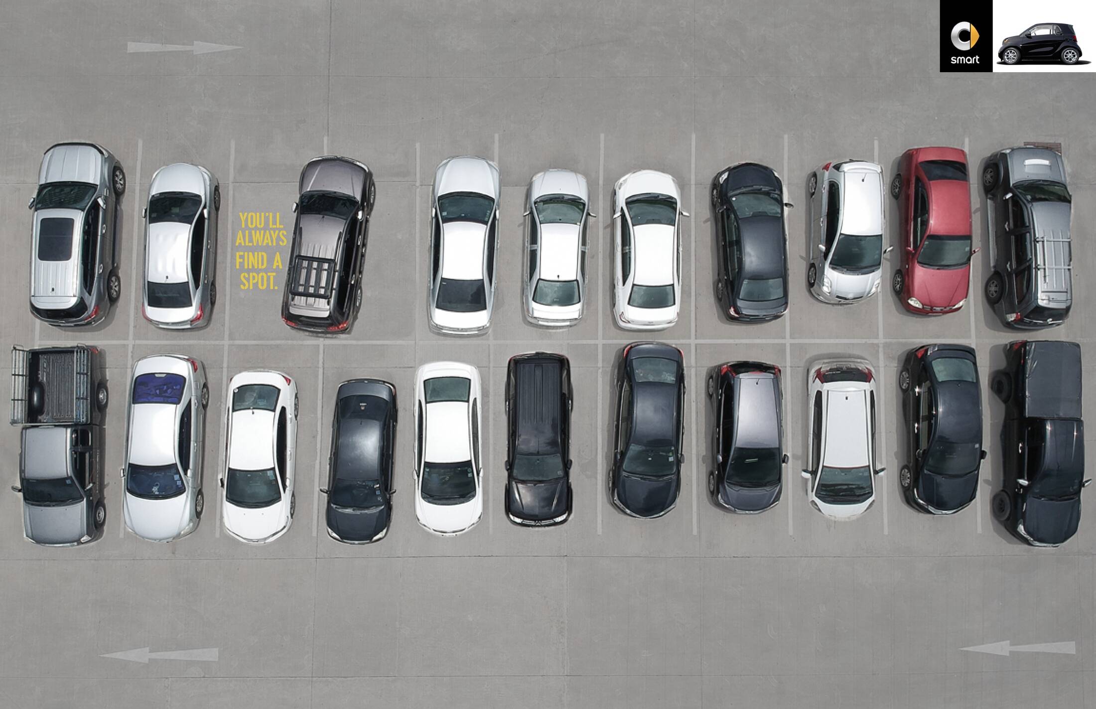 This student campaign titled 'You’ll always find a spot' was published in United States in March, 2019. It was created for the brand: Smart, by ad school: S.I. Newhouse School of Public Communications. This Print medium campaign is related to the Automotive and Personal Transportation industry and contains 3 media assets. It was submitted over 6 years ago.
