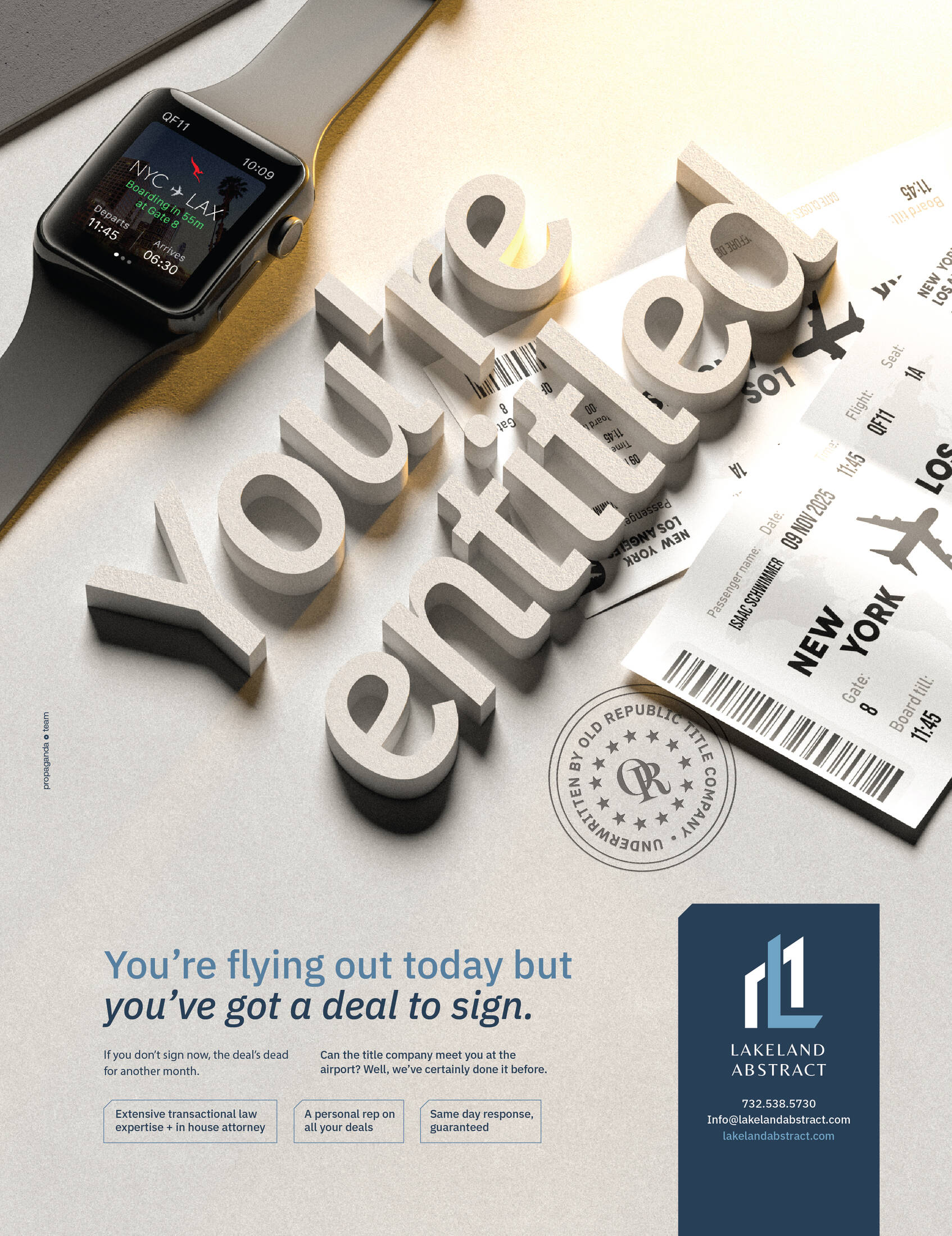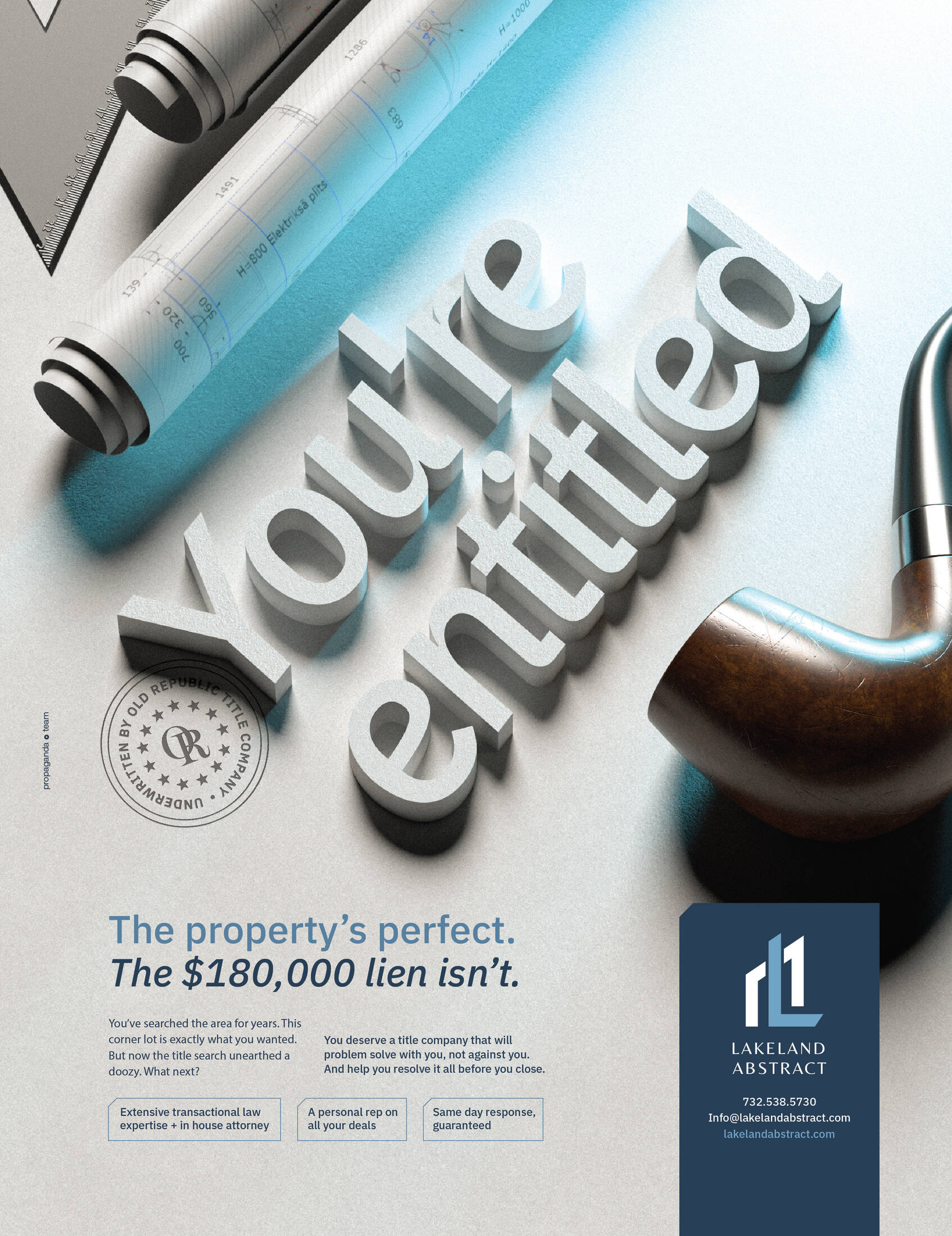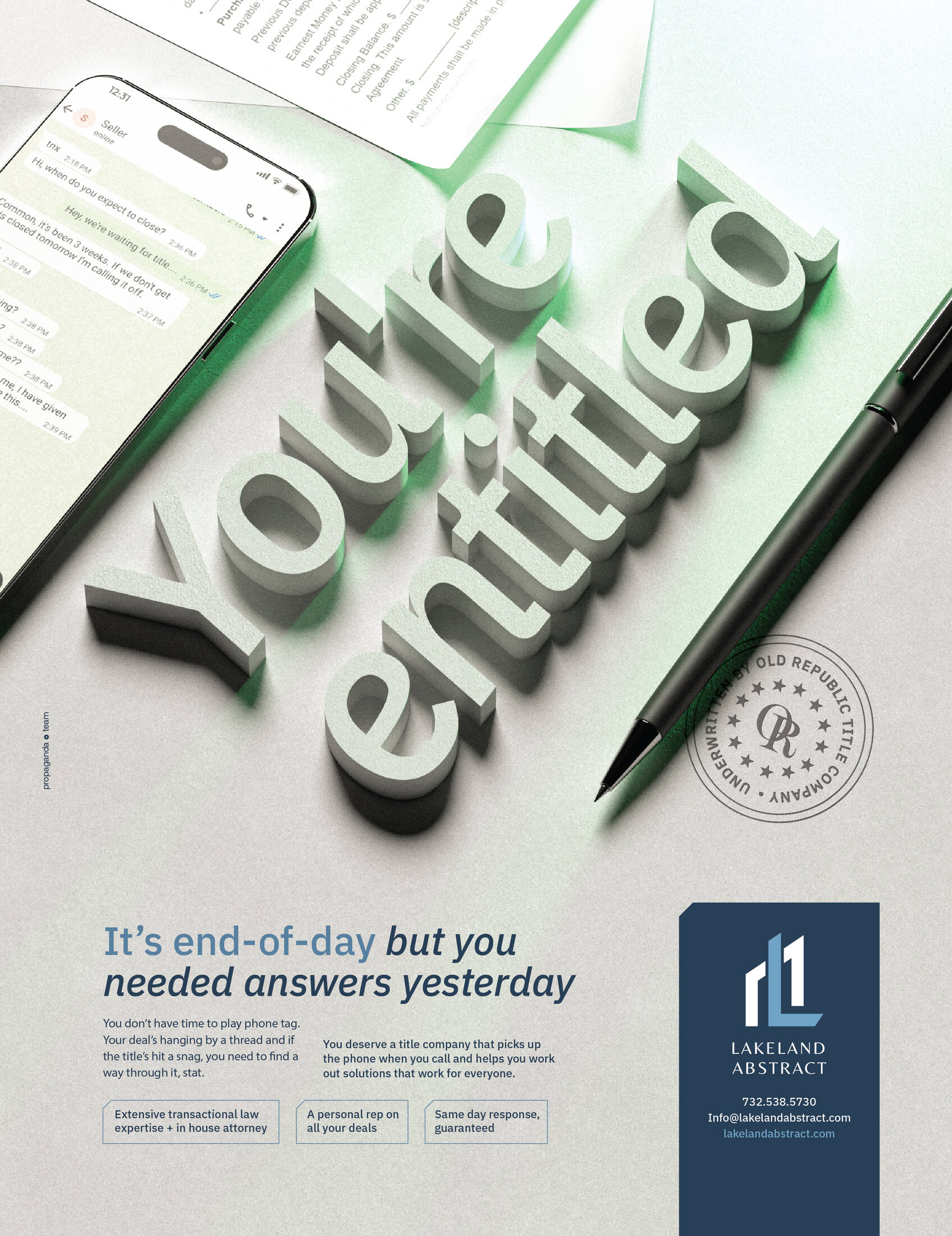 This professional campaign titled 'You're Entitled to Good Title' was published in United States in September, 2025. It was created for the brand: Lakeland Abstract, by ad agency: Propaganda.team. This Design, OOH Outdoor, and Print media campaign is related to the Finance and Real Estate industries and contains 5 media assets. It was submitted 5 months ago.
