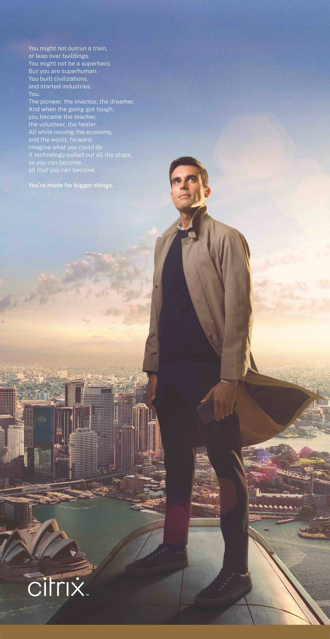 The anthem film, titled “Superhero,” serves as a tribute to its customers who have relied on Citrix technology to support their employees. It captures the magical feeling that people have when they are able to realize their potential. When they are set free from constraints and can do what they do best. People are shot heroically in hyper-real slow motion as they go about their jobs, unleashed by the power of Citrix. We see them in a beautiful moment of absolute freedom empowered by Citrix. Just like superheroes.