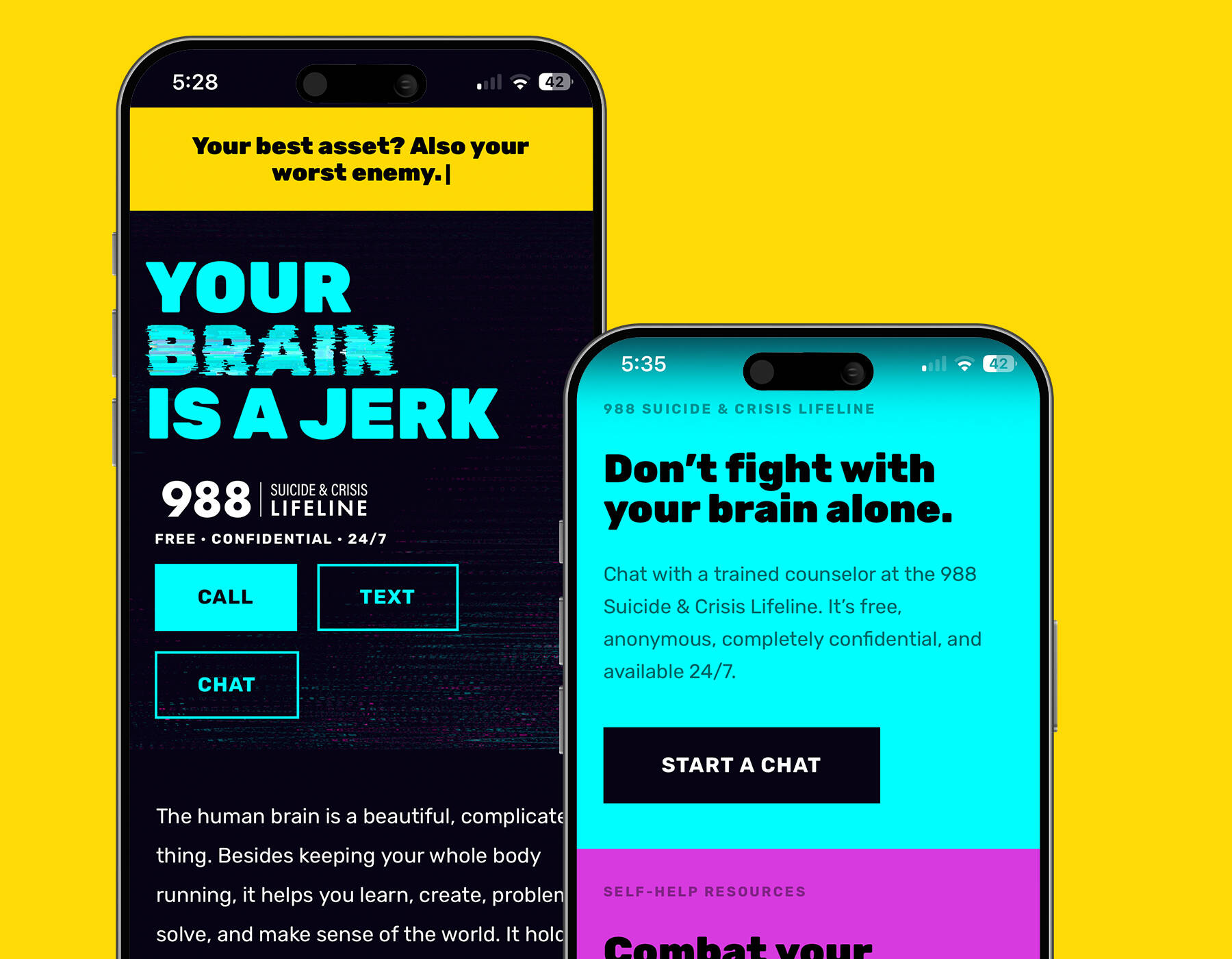 That reality led to Your Brain Is A Jerk, a radio-led awareness and prevention campaign created in partnership with the SC Office of Mental Health, iHeartMedia, and Chernoff Newman. Designed to disrupt harmful thought patterns with "abrupt empathy," the campaign reminds people that our brains hold an odd duality...capable of both amazing and debilitating things. And that the thoughts tearing them down aren't the truth, and support is within reach.