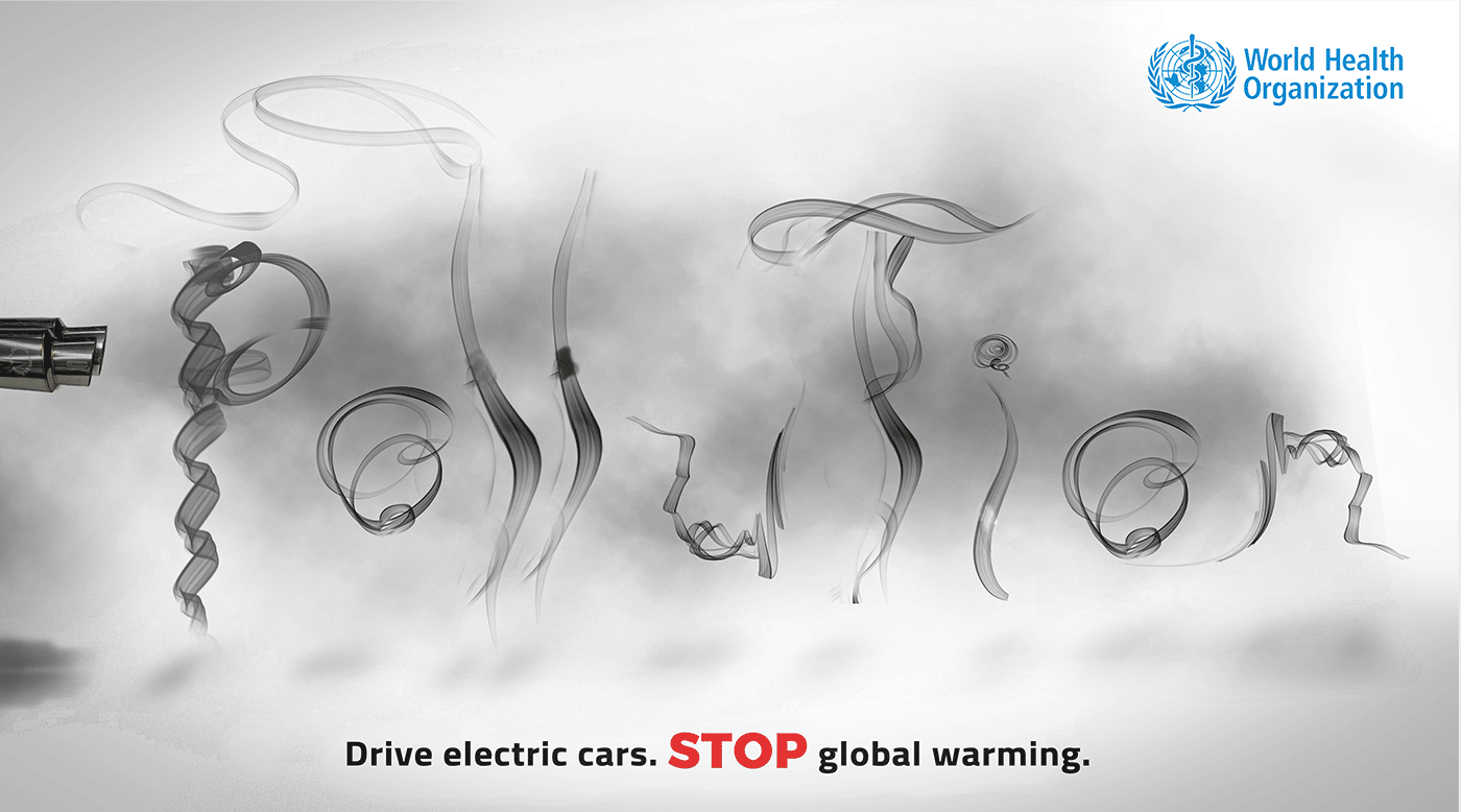Social media designs are designed to raise awareness about smoking and pollution for the World Health Organization.