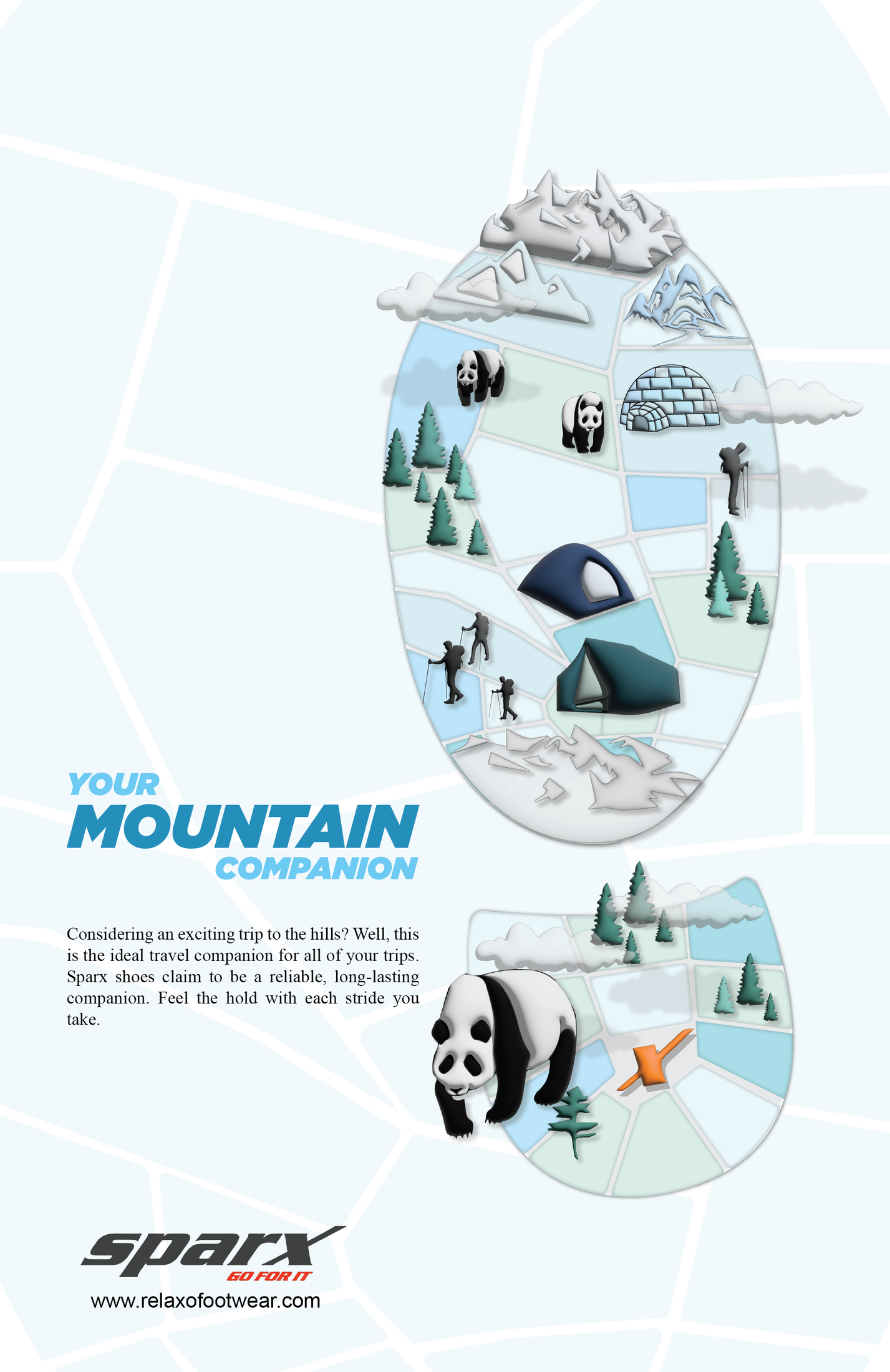 This campaign is designed for an Indian footwear brand, Relaxo. It is a largest footwear manufacturer in India. It's most popular brands – Relaxo, SPARX, Flite & Bahamas are a leader in their space. Sparx reflects the attitude, style, dynamism and spirit of young India and offers sports shoes, sandals & slippers, making it a popular choice among travellers.