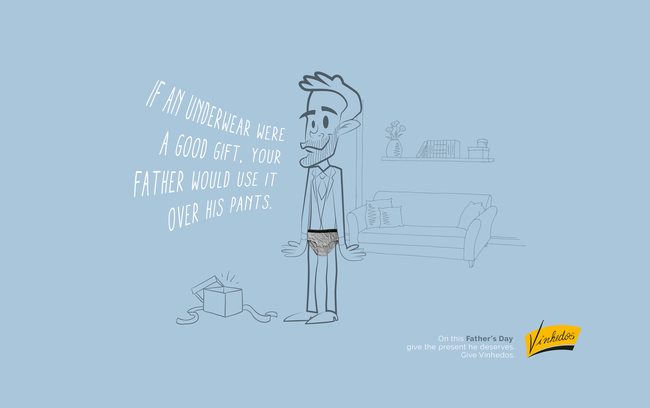 To the good old Brazilian style of advertising, the campaign, which brings illustrations that support the text, plays with slang and popular expressions in an irreverent way, giving them a double meaning and showing in a playful and humorous way, as a common gift Is not up to par with our parents. A light and humorous campaign, with a clear and direct concept, that summons the public to action.