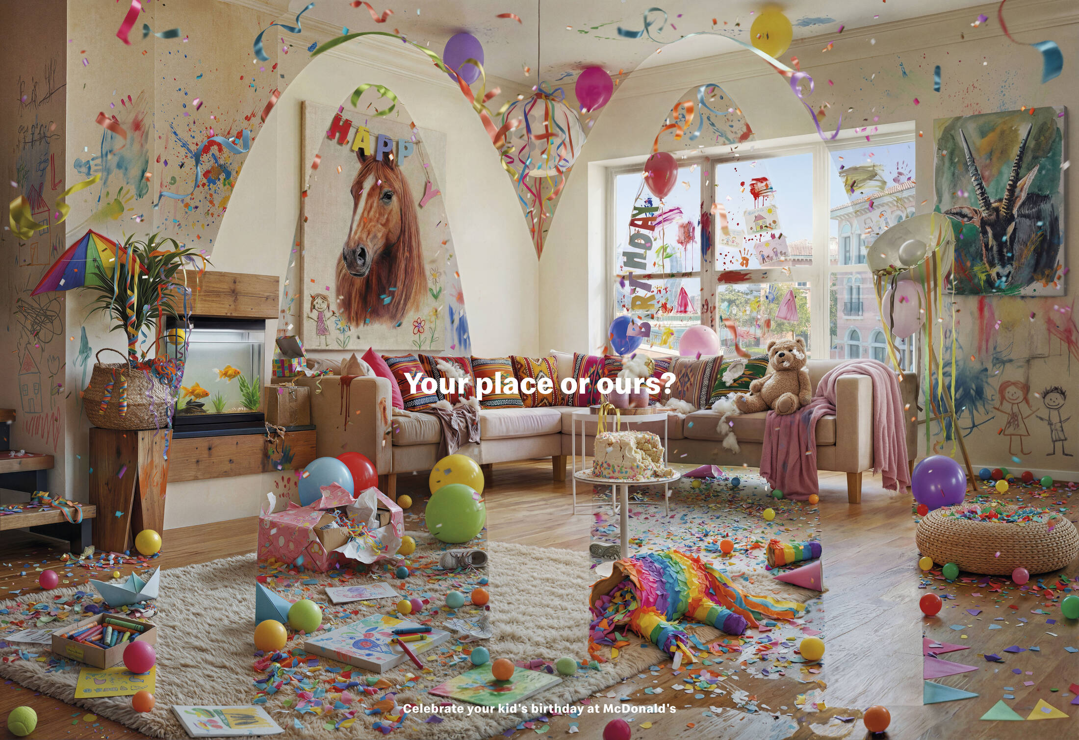 A campaign that contrasts what parents see versus what kids experience. While parents invest in perfect décor at home, the aftermath reveals that the effort was more about adult approval than children's enjoyment. Through a kid's eyes, the décor isn't all that important, and through post-party visuals and this perspective shift, the campaign asks parents a simple question: are you hosting for others, or celebrating your child's day?