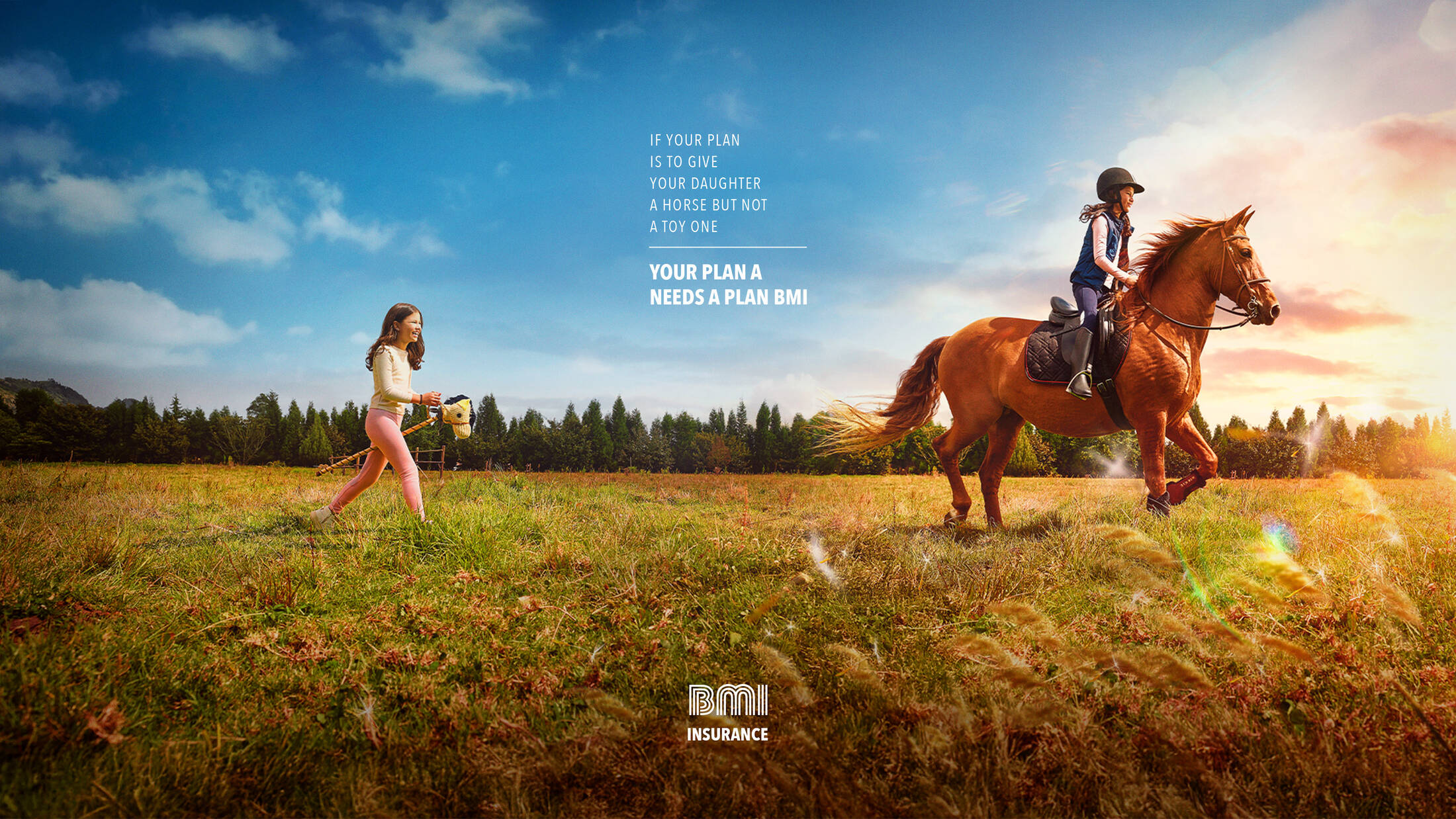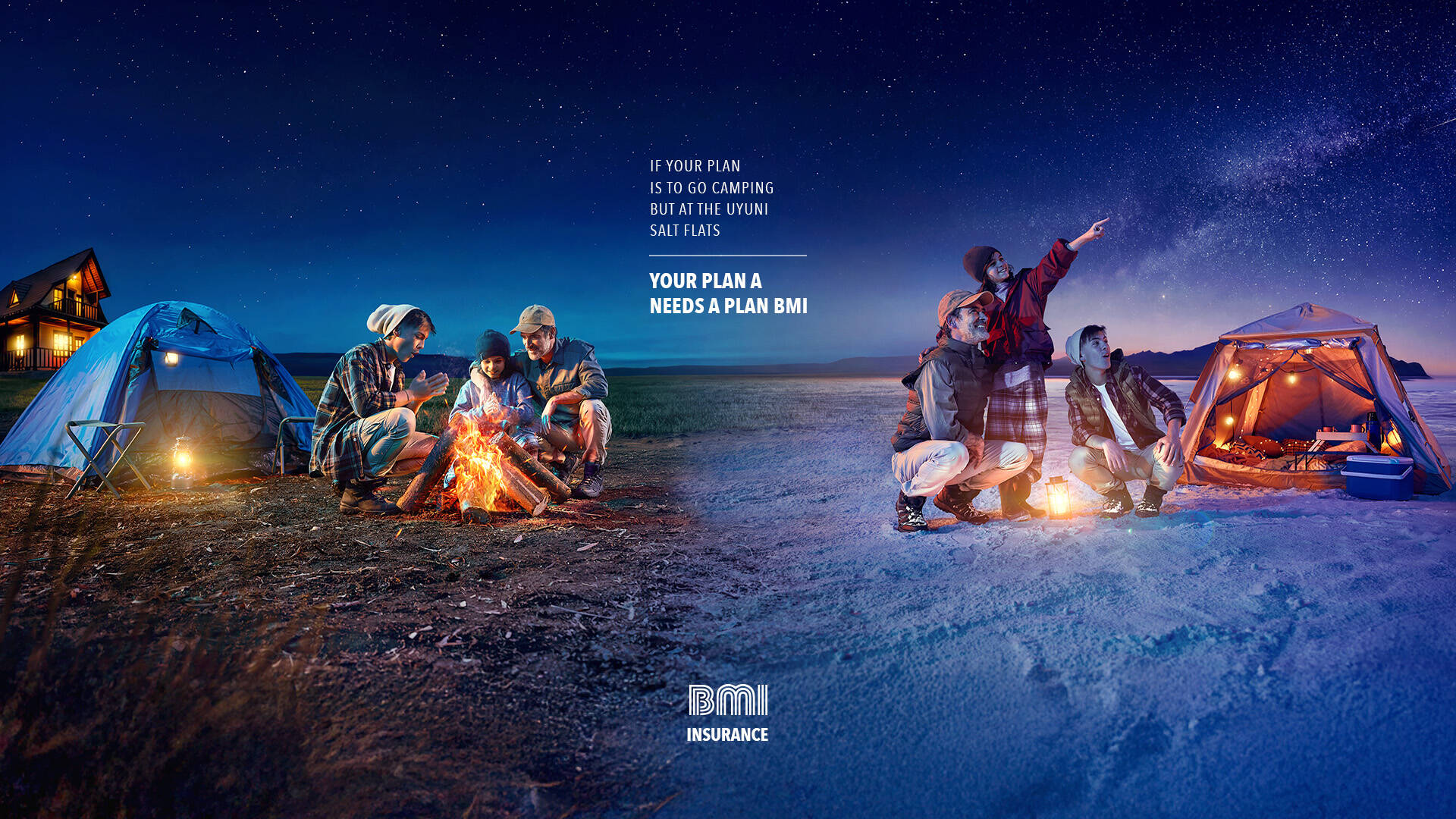 The campaign is based on a simple idea: behind every great dream there is a plan, but also a risk. Through images split between two realities, the pieces show how the same intention can become an extraordinary experience and involve greater risks: camping in a backyard or on the Uyuni Salt Flats, giving your daughter a toy horse or a real one, learning photography as a hobby or traveling the world documenting it, running for exercise or training for a major marathon. With the message “Your Plan A Needs a Plan BMI,” the campaign positions insurance as what protects and enables people’s real plans, allowing them to aim higher.