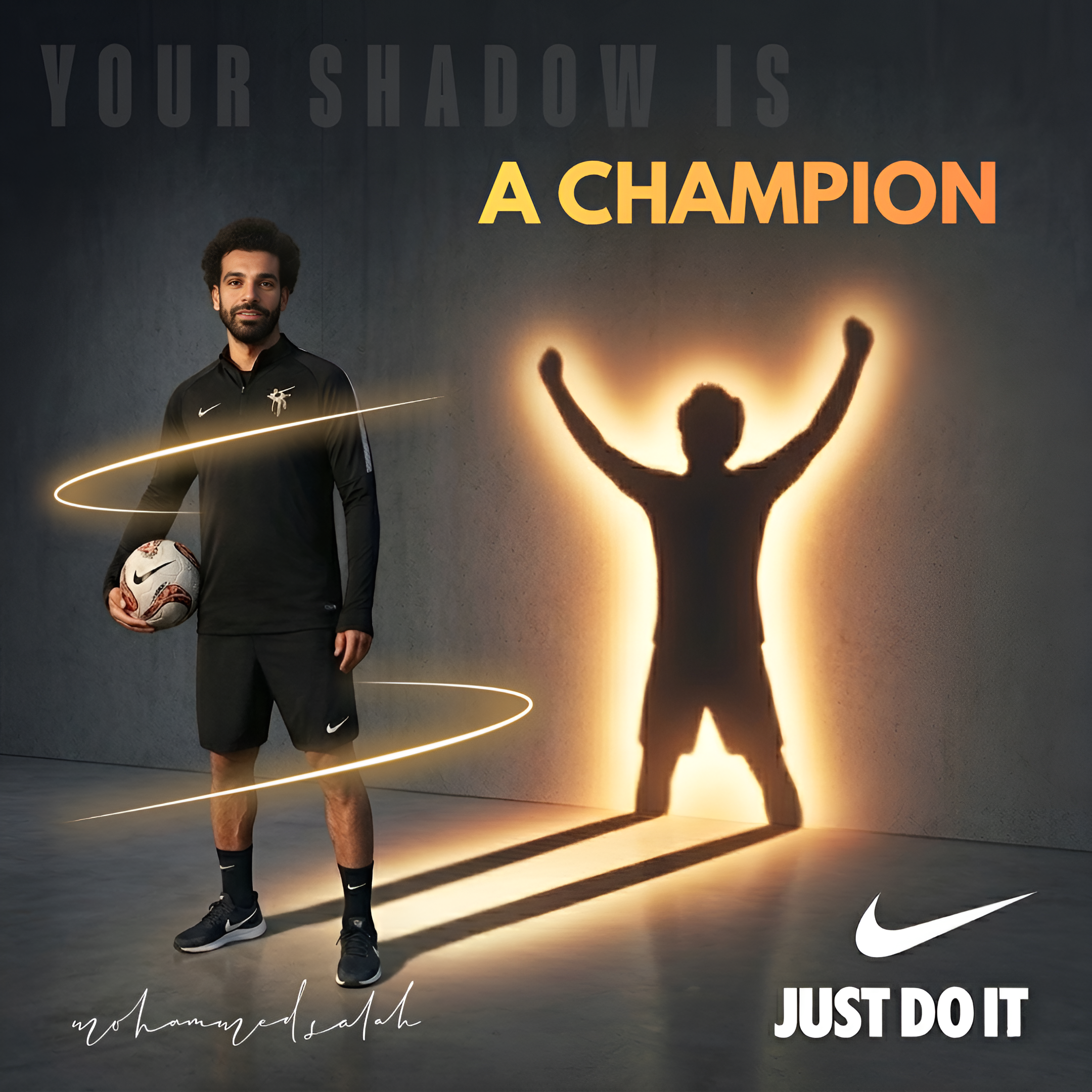 This student campaign titled 'Your Shadow Is A Champion' was published in Egypt in April, 2026. It was created for the brands: Foot Locker and Nike, Nike, and Nike Esports, by ad school: SABER GROUP COURSES ACADEMY. This Design, Digital, and Static Images media campaign is related to the Fitness, Sports, and Sportswear industries and contains 4 media assets. It was submitted 1 day ago by Graphic designer: Amira of Saber Group Academy.