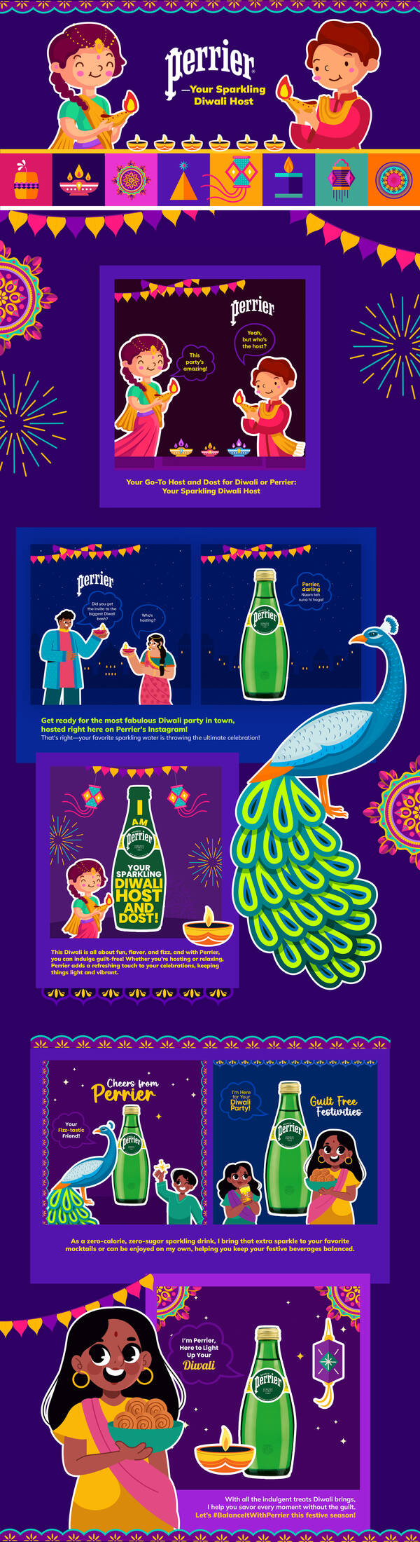 This professional campaign titled 'Your Sparkling Diwali Host' was published in India in October, 2024. It was created for the brand: Perrier, . This Integrated medium campaign is related to the Drinks (Non Alcoholic), Food, and Other industries and contains 1 media asset. It was submitted 11 months ago.