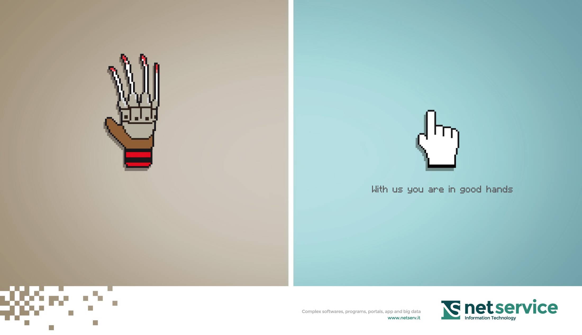 This professional campaign titled 'Zombie, Hook, Freddy' was published in Italy in October, 2014. It was created for the brand: Netservice, by ad agency: Touché. This Print medium campaign is related to the Electronics, Technology industry and contains 3 media assets. It was submitted about 11 years ago.